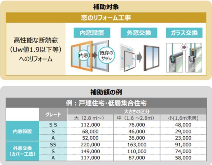 画像:環境省 断熱窓への改修促進等による住宅の省エネ・省CO2加速化支援事業の概要(令和5年12月7日更新)資料より画像抜粋
