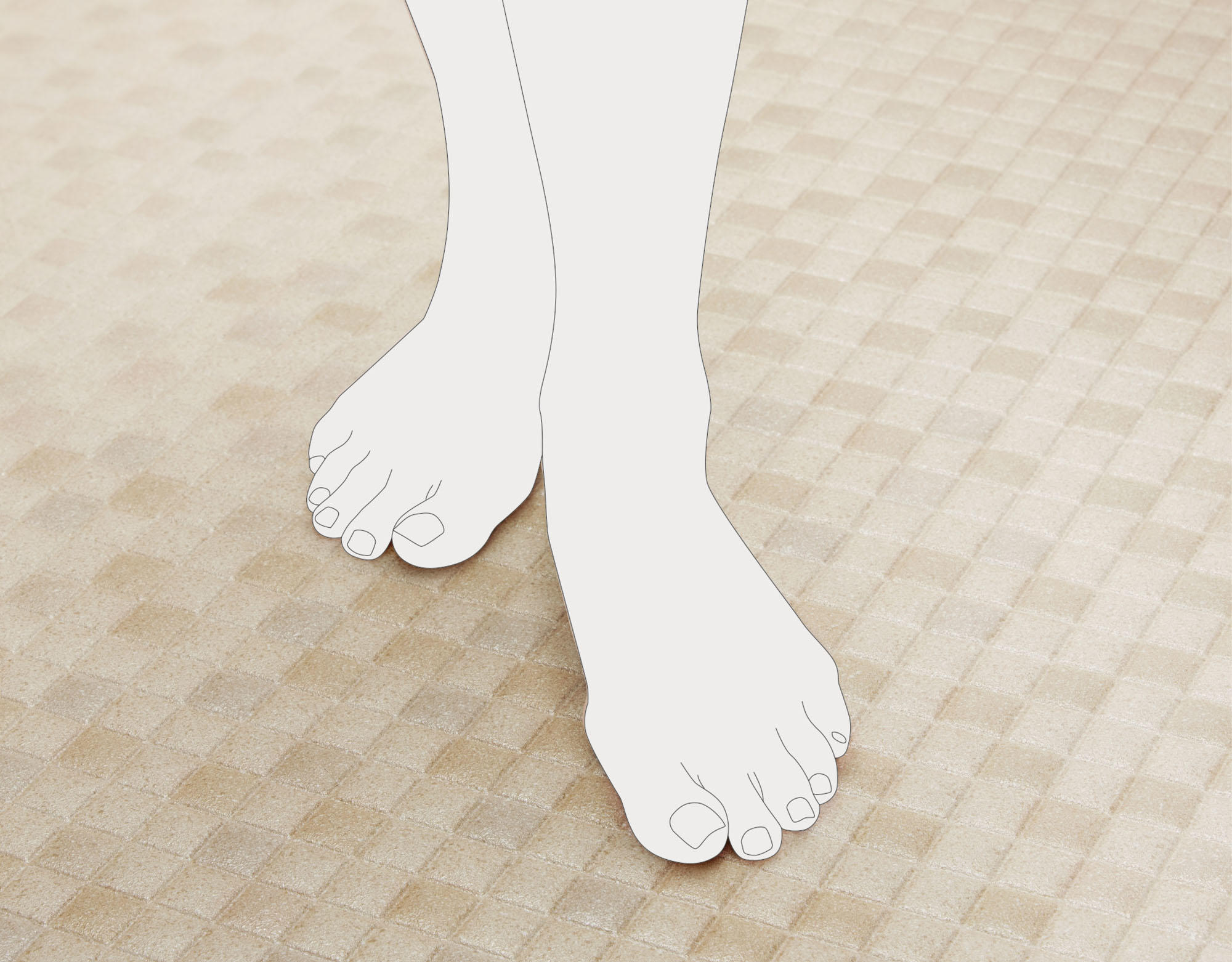 特殊な表面処理により汚れにくく、独自の断熱層により足裏から逃げる熱を少なくして、冷たさが軽減される『キレイサーモフロア』