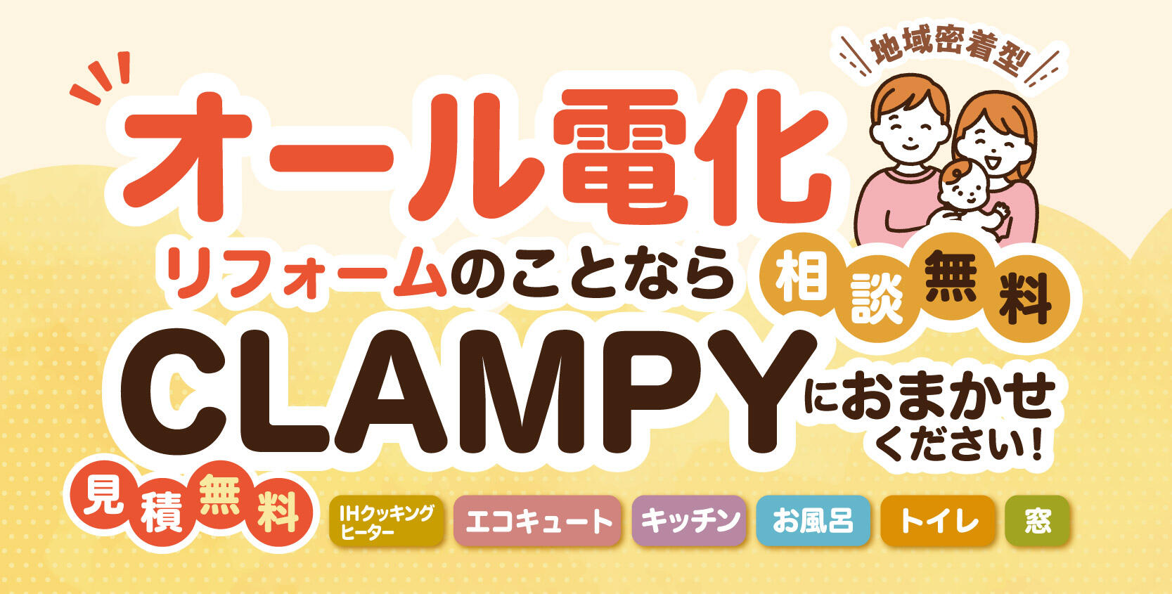 オール電化リフォーム検討中で、お悩みがありましたら、お気軽にCLAMPYにご相談ください。