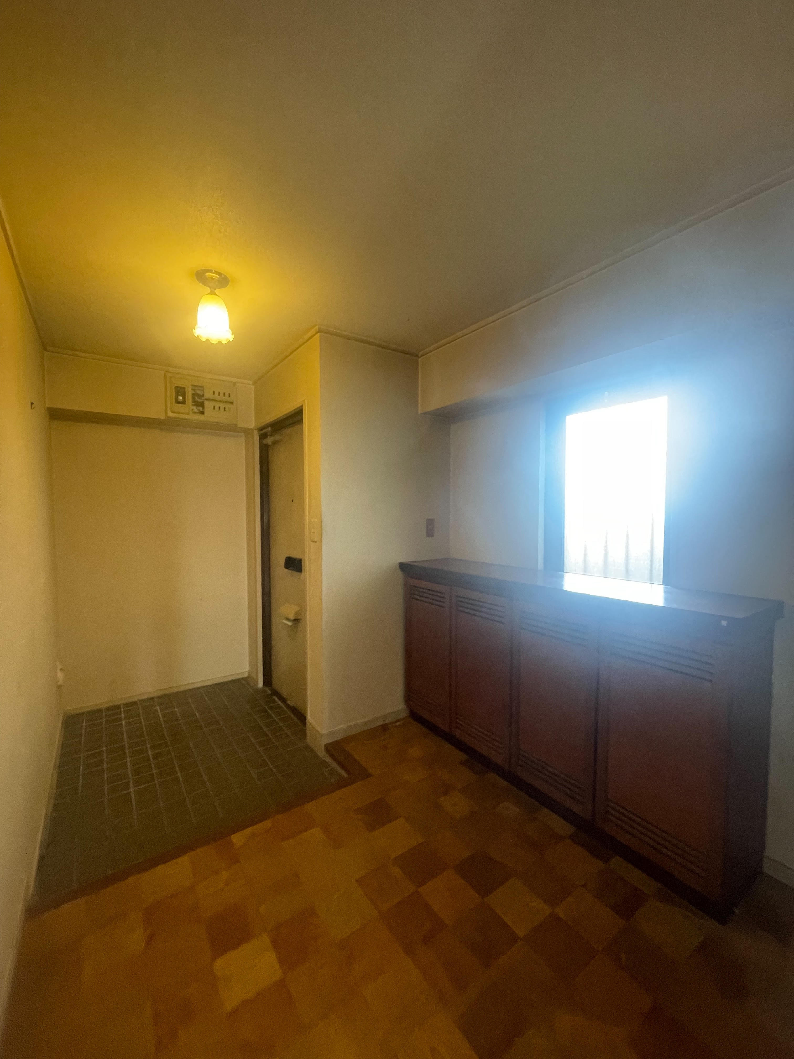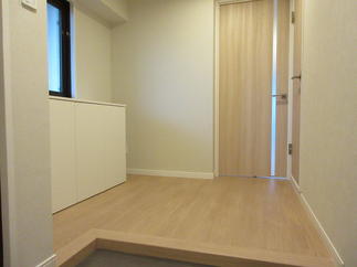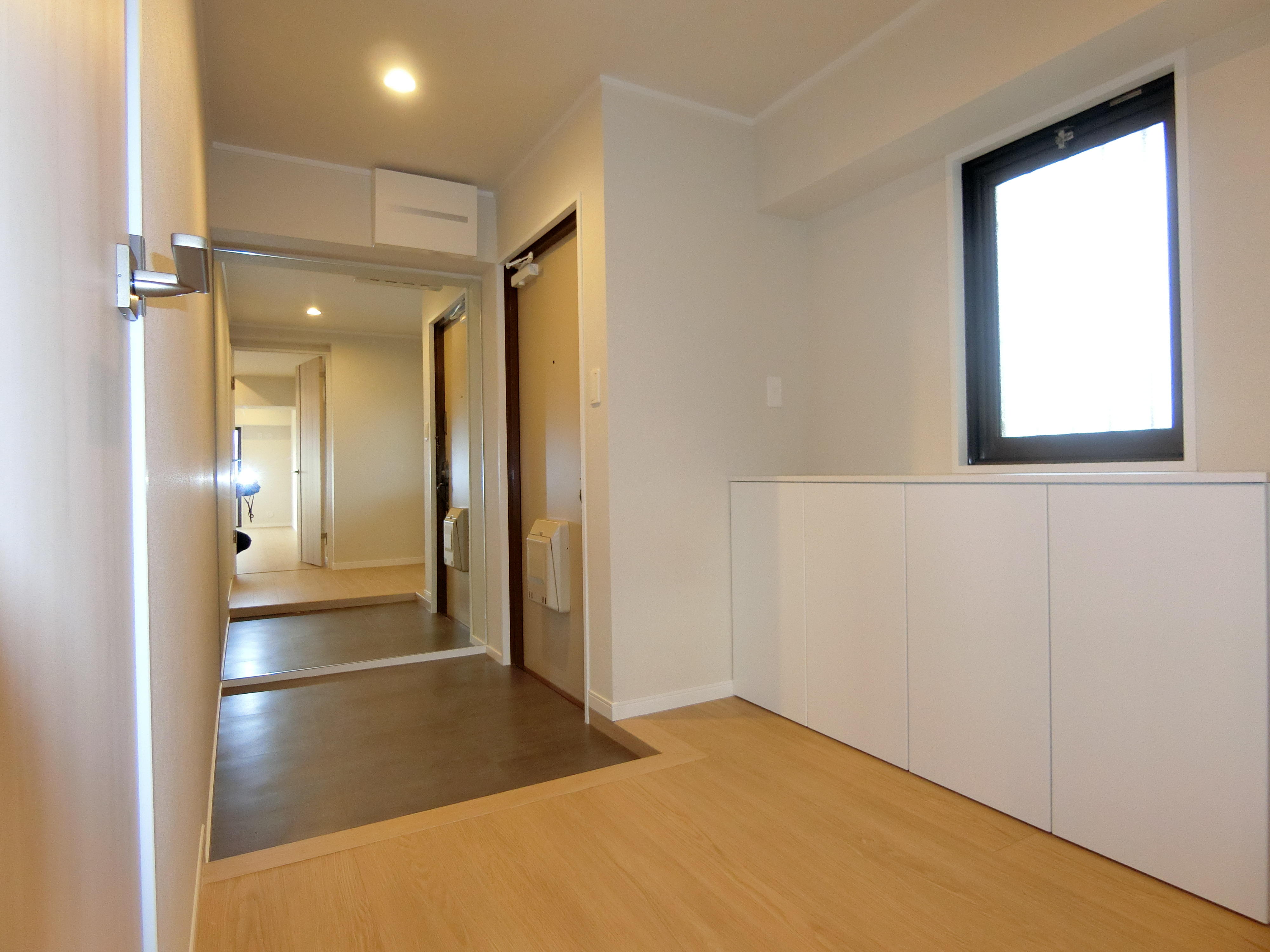 玄関収納:LIXILカウンター型LAA「プレシャスホワイト」色仕様 玄関土間部分はフロアタイル貼する事で新築のようなホールへと生まれ変わりました☆