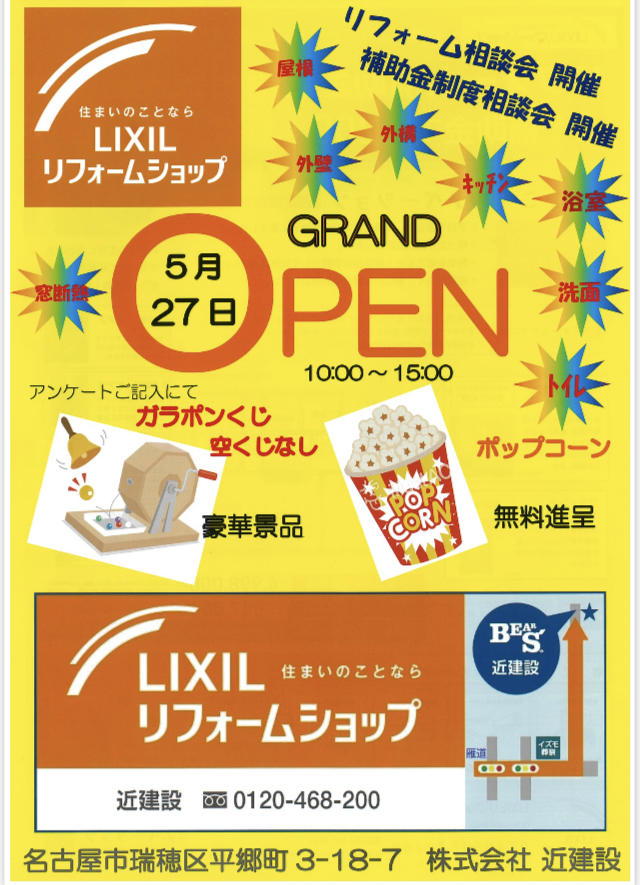 5月27日(土) 10時~15時 LIXILリフォームショップ近建設 グランドオープン!!