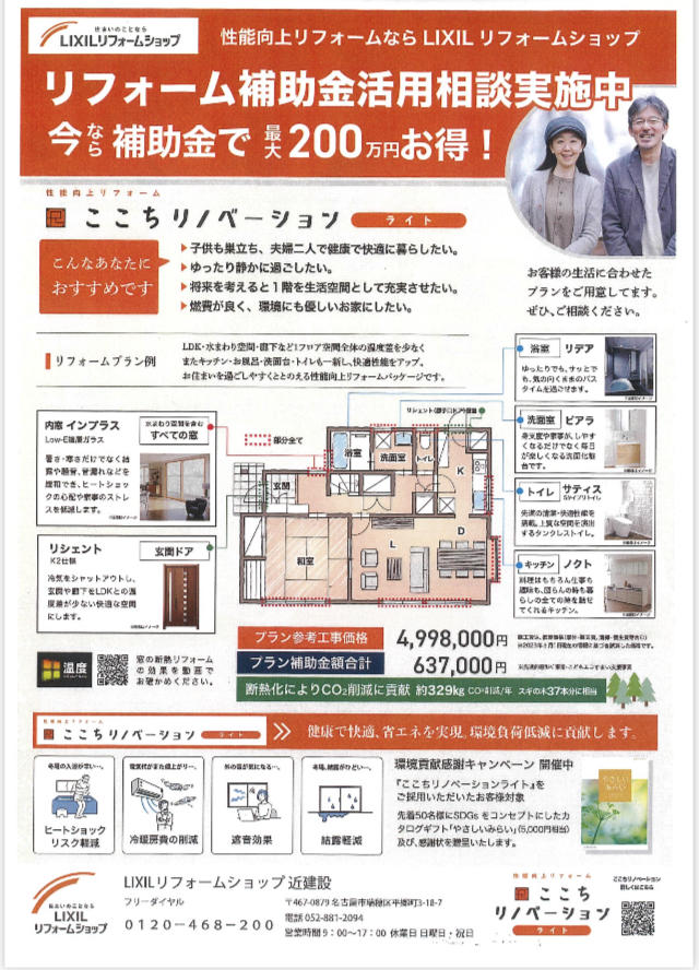 安心の近くのLIXILリフォームショップ 近建設 ご来場お待ちしております。