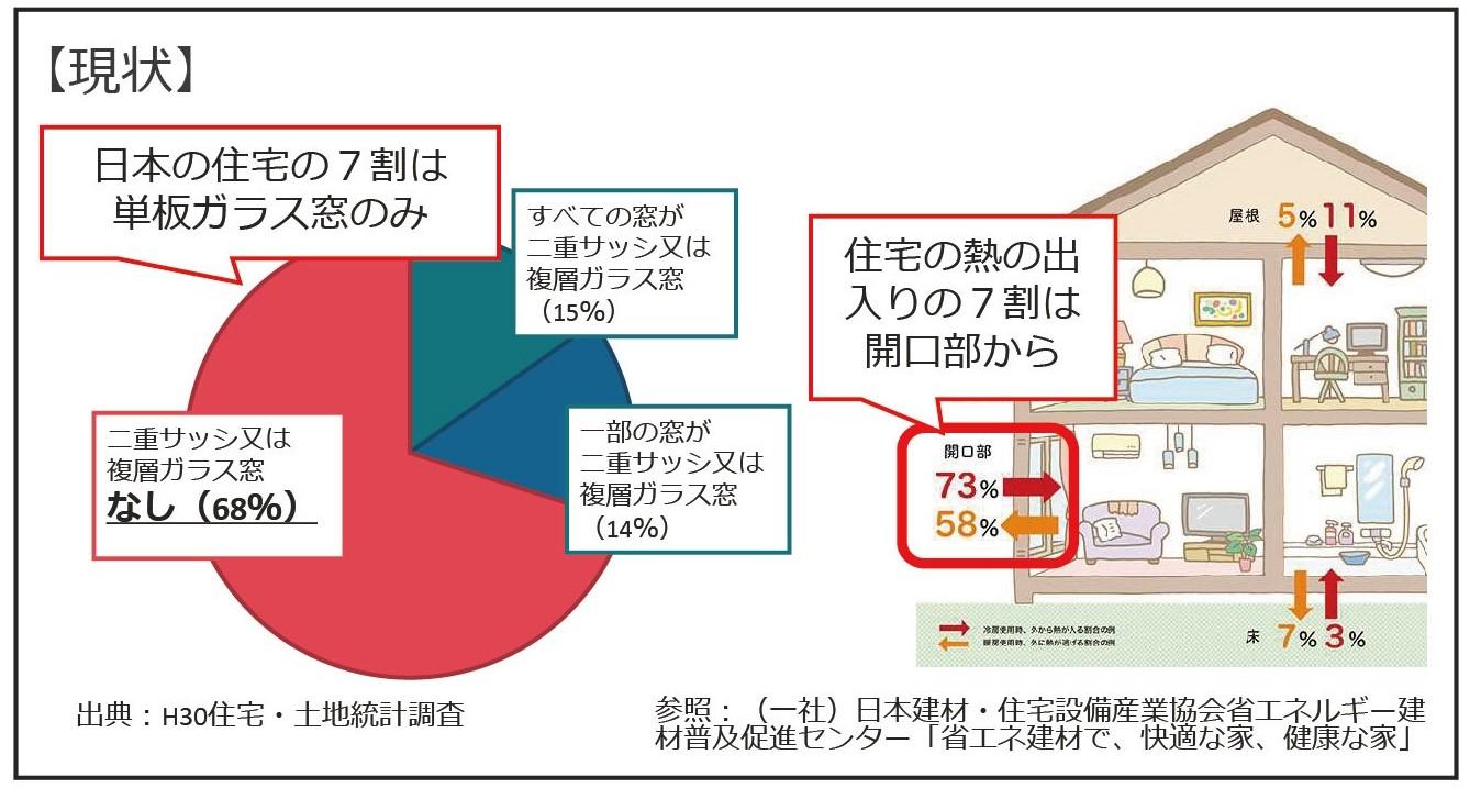 電気やガス代が高騰する今、注目されているのが窓の断熱です。夏の場合、開口部から入ってくる熱の割合は73%、冬の場合、開口部から出ていく熱の割合は58%といわれています。住まいの中で、最も熱の出入りが多いのが窓や玄関などの開口部。寒さ・暑さ、結露といったお部屋のお悩みを解消するためには、まず、開口部をしっかり"断熱"することが大切です。