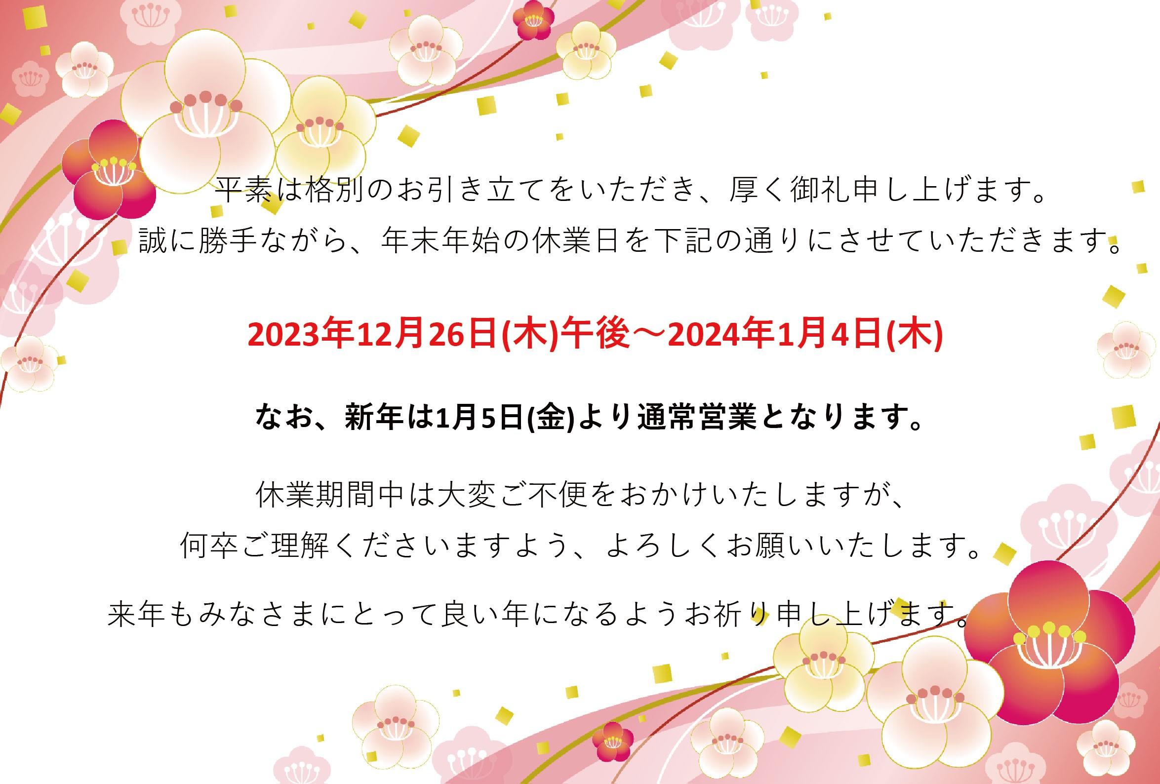 年末年始休業日のお知らせ