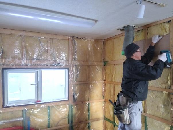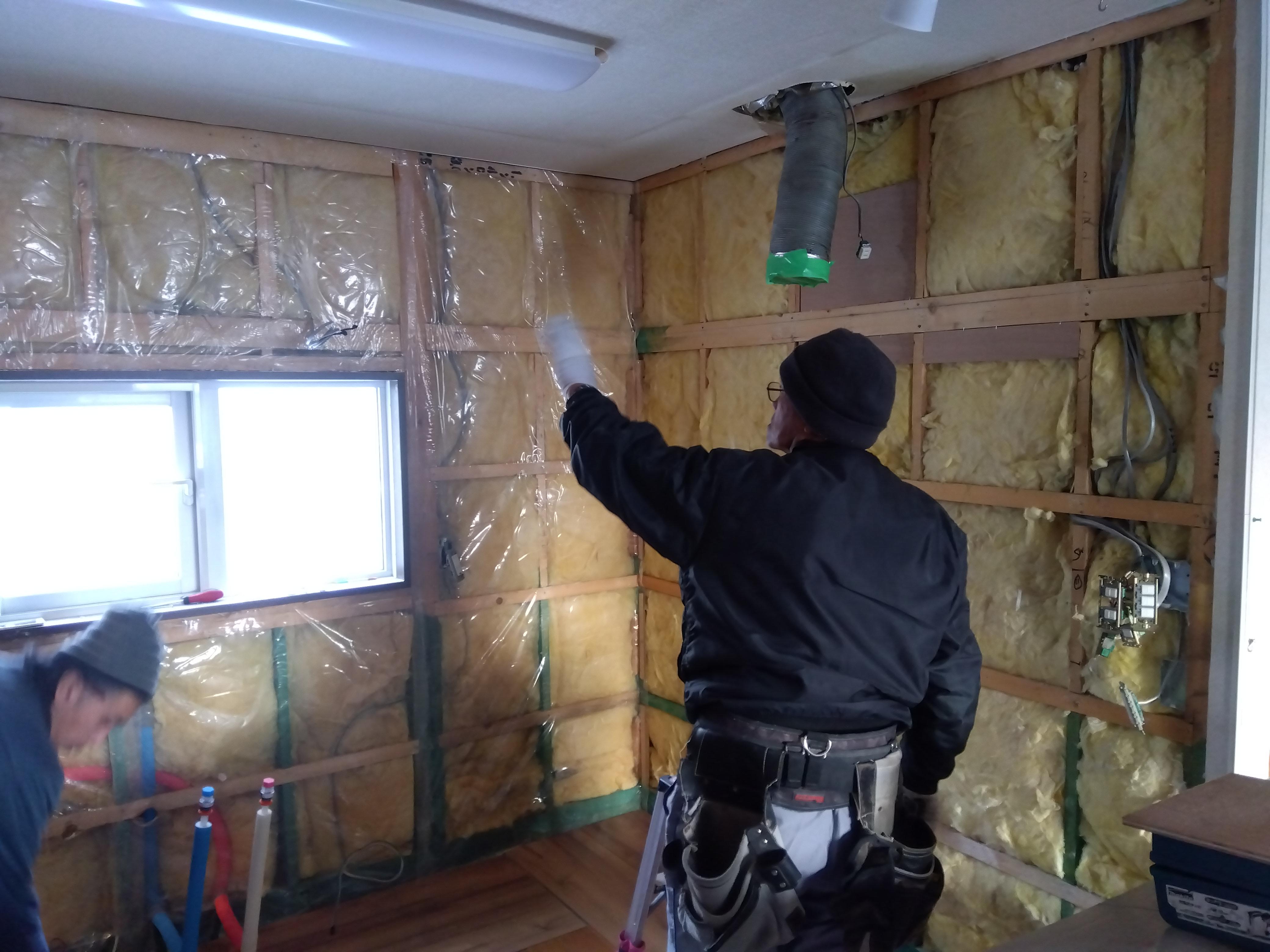 本日、既存のキッチンを撤去してから給排水のための配管とライニング施工を行っています。