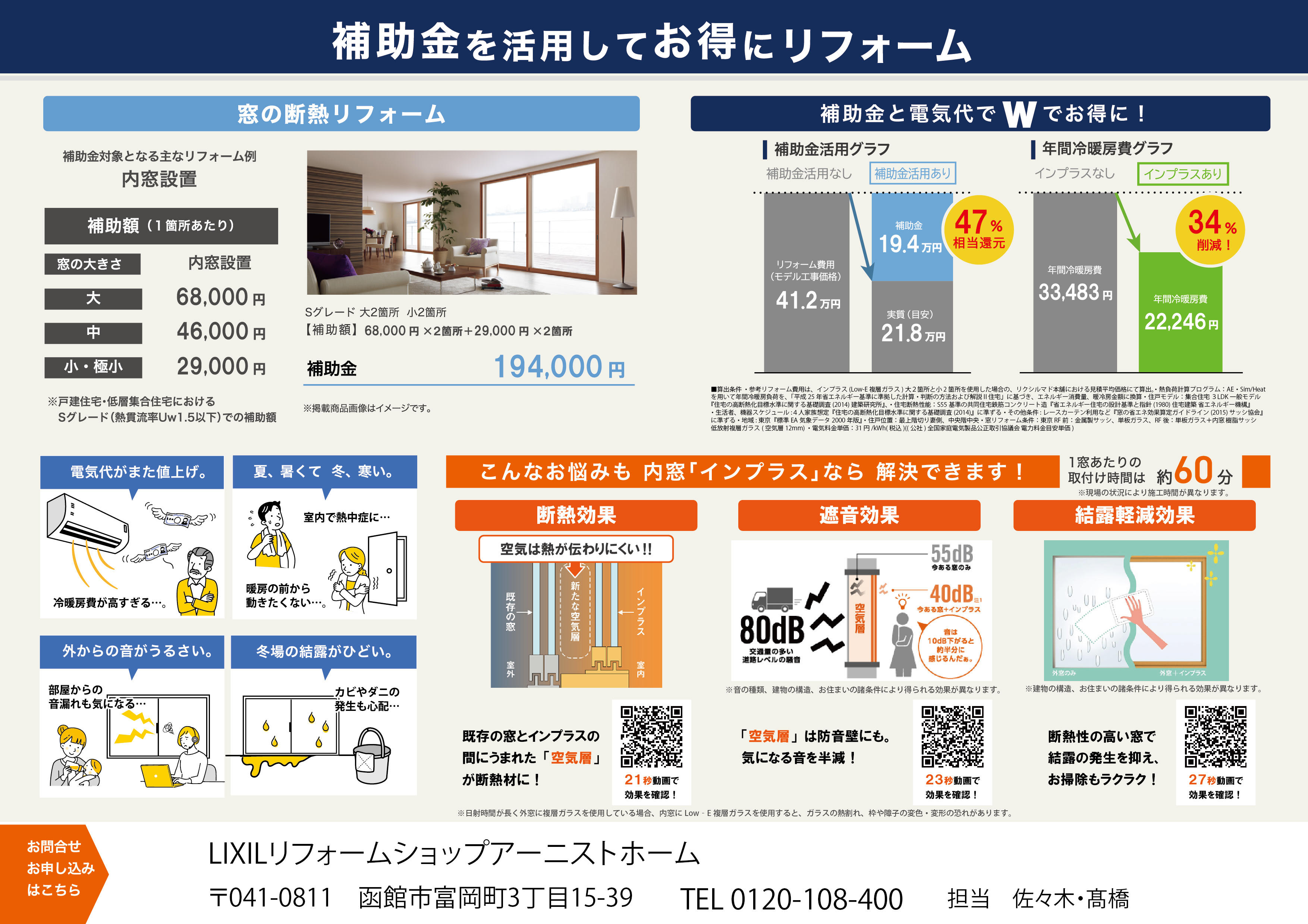 LIXILのインプラスは、今ある窓に、もう一つ窓を設置するだけで<断熱効果><結露軽減><遮音効果><UVカット><侵入抑止効果><経済性>など6つのメリットが得られます。今なら、国の補助金を使って、最大50%相当の還元でお得にお悩みが解決できます!