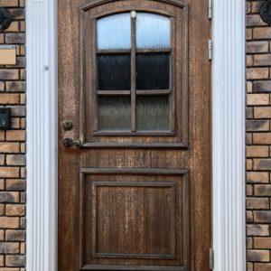木製輸入玄関ドアの経年劣化が目立ち、建付けも悪くなってきたため新しいドアに交換したい事と費用を最小限にしたいというお客様のご要望で、相見積もりの1社としてご相談を頂きました。今回、日本製の玄関ドア(アルミ製・木目調・アイアンテイスト)がご希望との事で、リクシルのジエスタ2(寒冷地用)をご提案させていただき、併せて輸入ドアと同じ寸法に加工することでドア枠を変える事無く最新のドアを取付ることが出来ました。