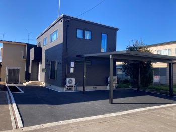 新築されたT様邸にてアスファルト舗装工事、カーポート設置工事、物置設置工事をさせて頂きました。