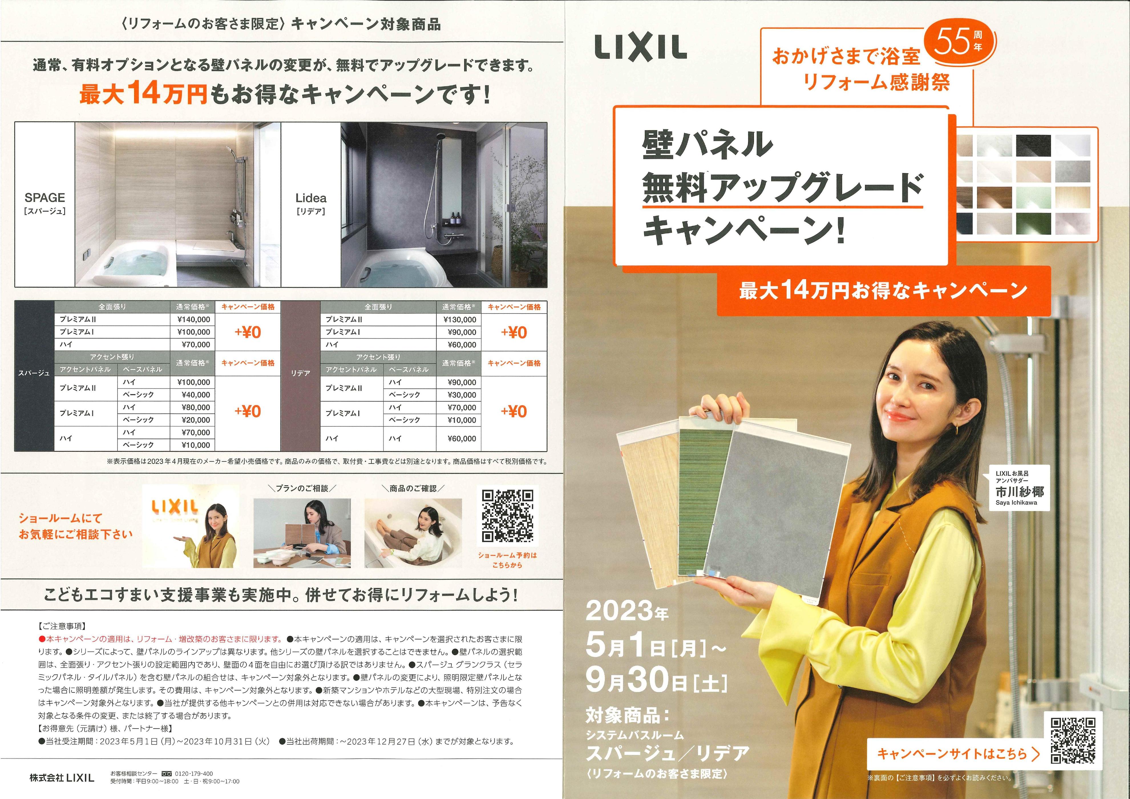LIXIL おかげさまで浴室55周年★リフォーム感謝祭!「壁パネル・無料アップグレードキャンペーン!」が開催中です。