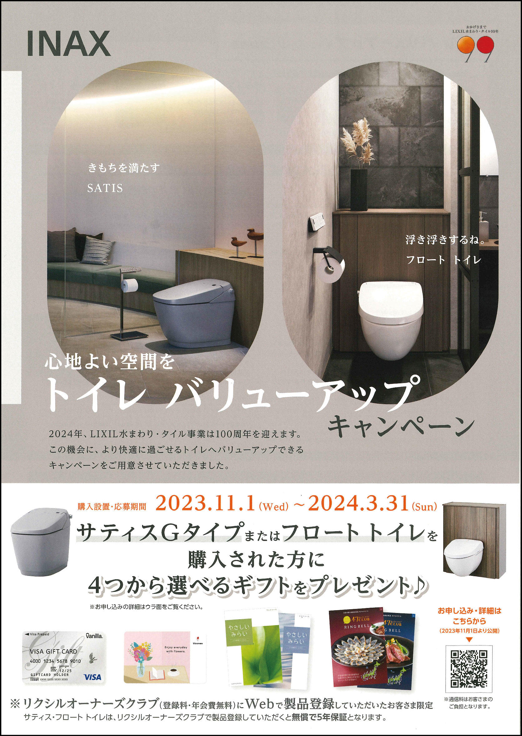 この機会に、より快適に過ごせるトイレへバリューアップできるキャンペーンをご用意させていただきました。