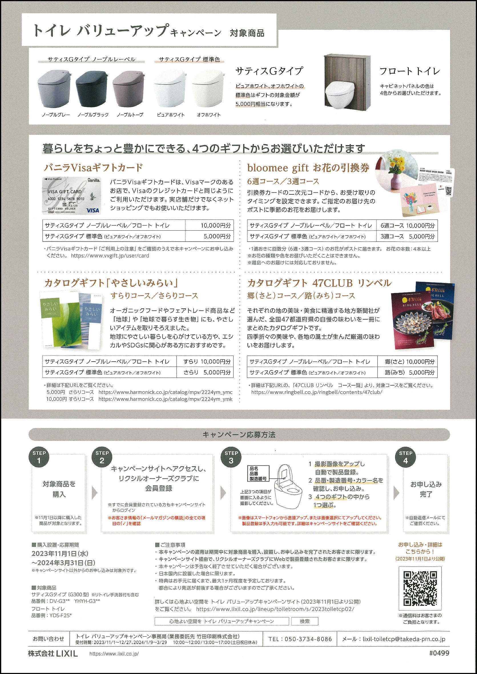 「サティスGタイプ」・「フロート トイレ」をご購入された方に選べるギフトをプレゼント!