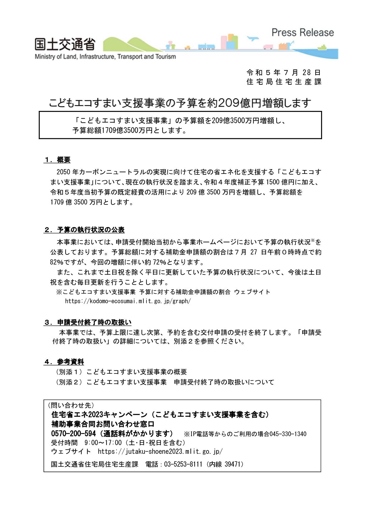 「こどもエコすまい支援事業」について現在の執行状況を踏まえ、