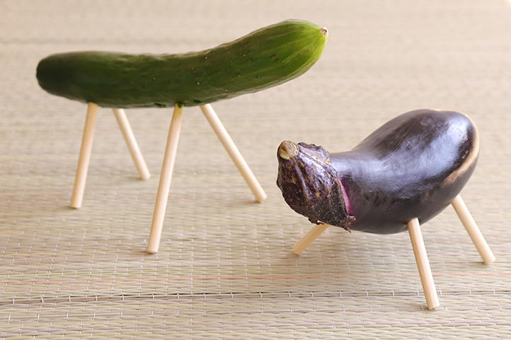 ナスに足を付けた「精霊牛」をお供えしておりました。