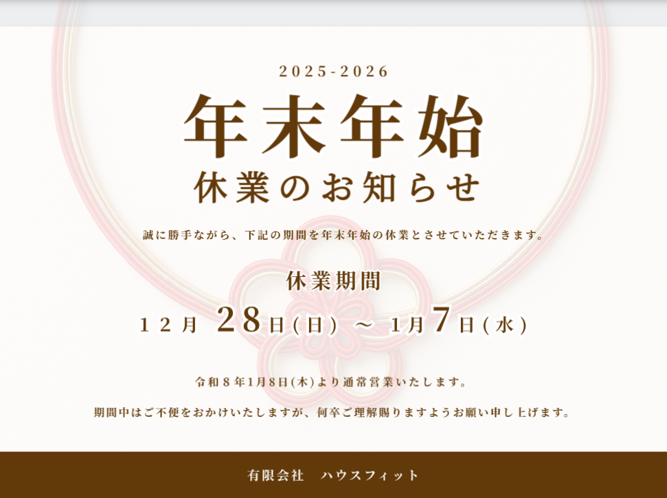 誠に勝手ながら、下記の期間を年末年始休業とさせていただきます。