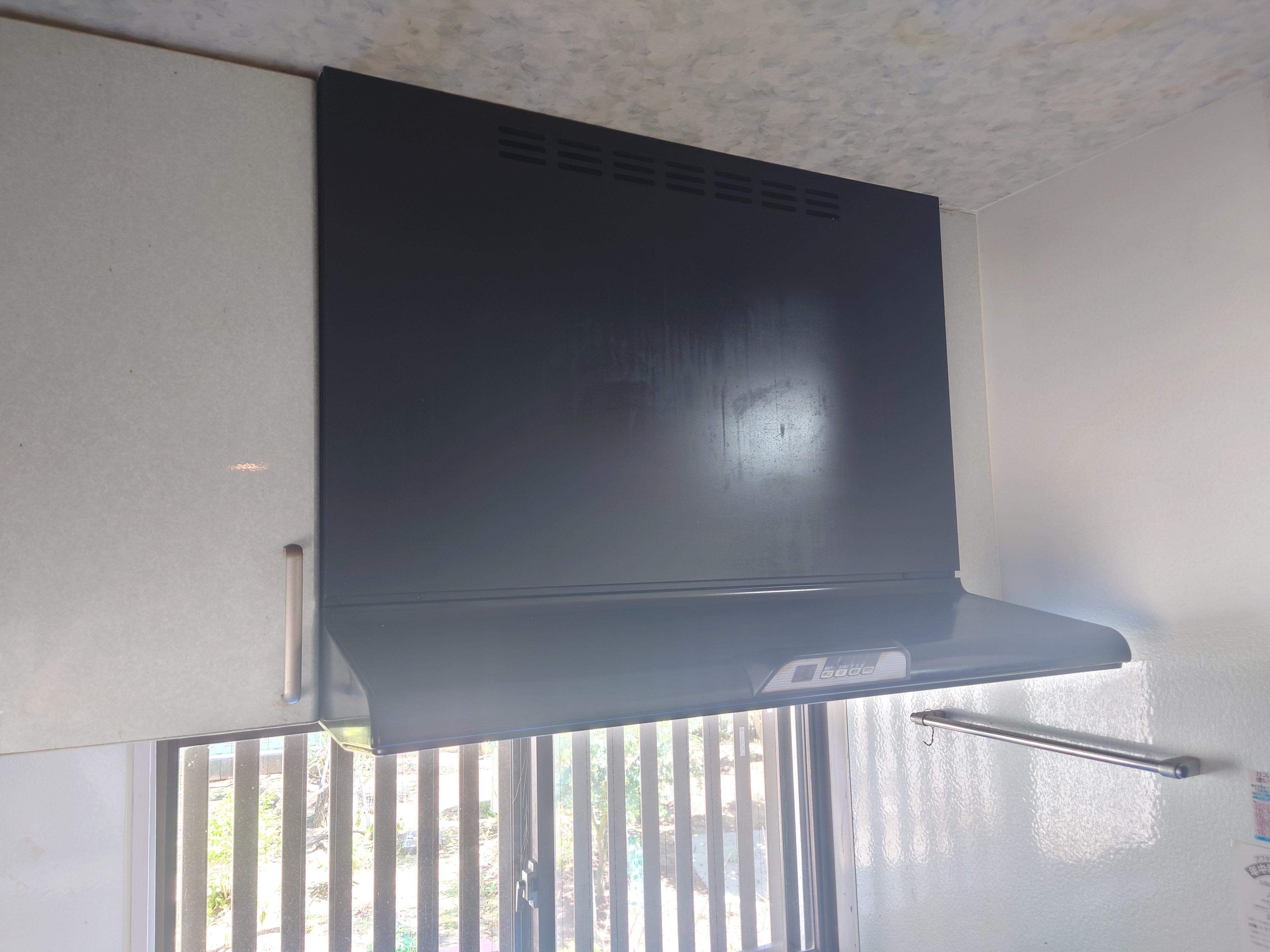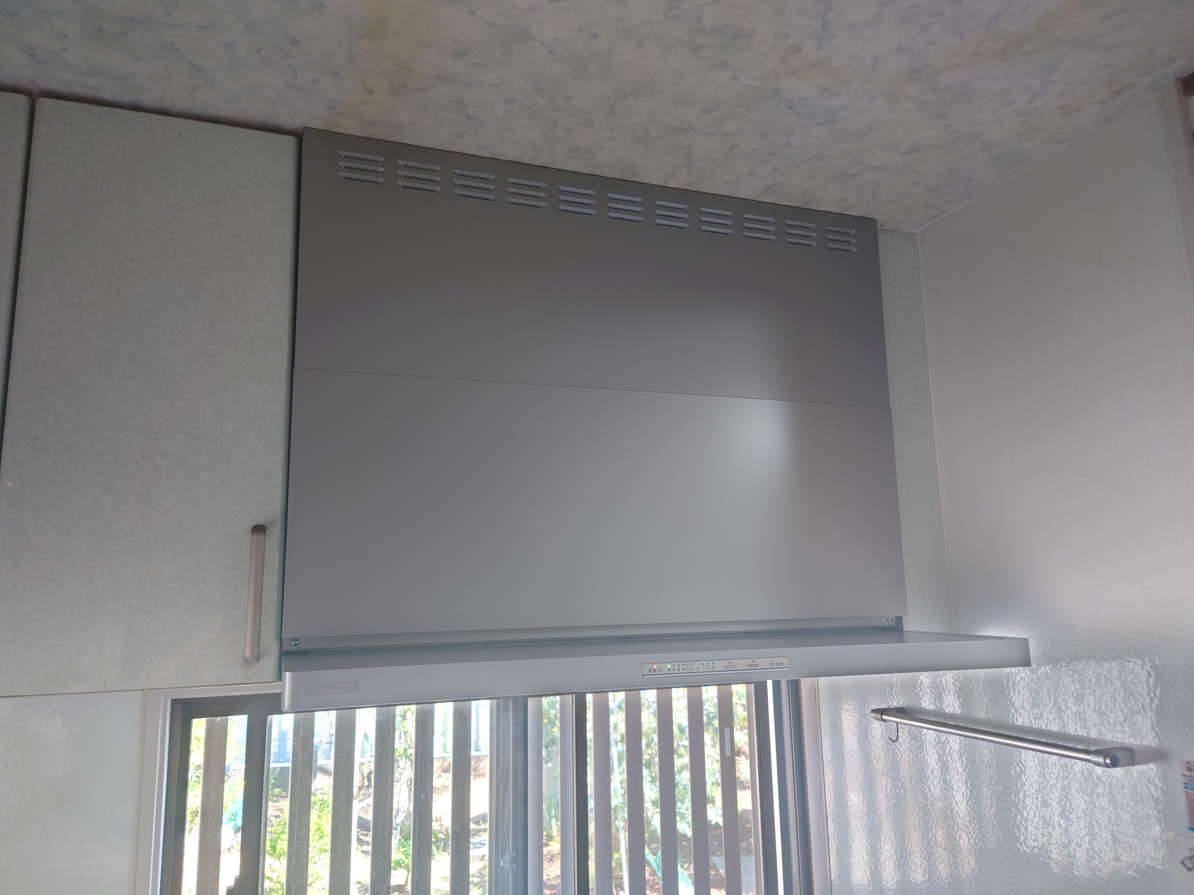 老朽化の為、吸い込みが悪くなってしまったとのことで、レンジフードの交換をさせていただきました。 ご採用いただきました商品は、レンジフード専門メーカー独自の「オイルスマッシャー」により、ファンとレンジフード内部への油の侵入をブロック。ファンとレンジフード内部のお掃除が不要で、お手入れにかかる時間を大幅に削減します。内部の羽を10年間洗わなくてよい、とても清掃性が良いものとなっております。
