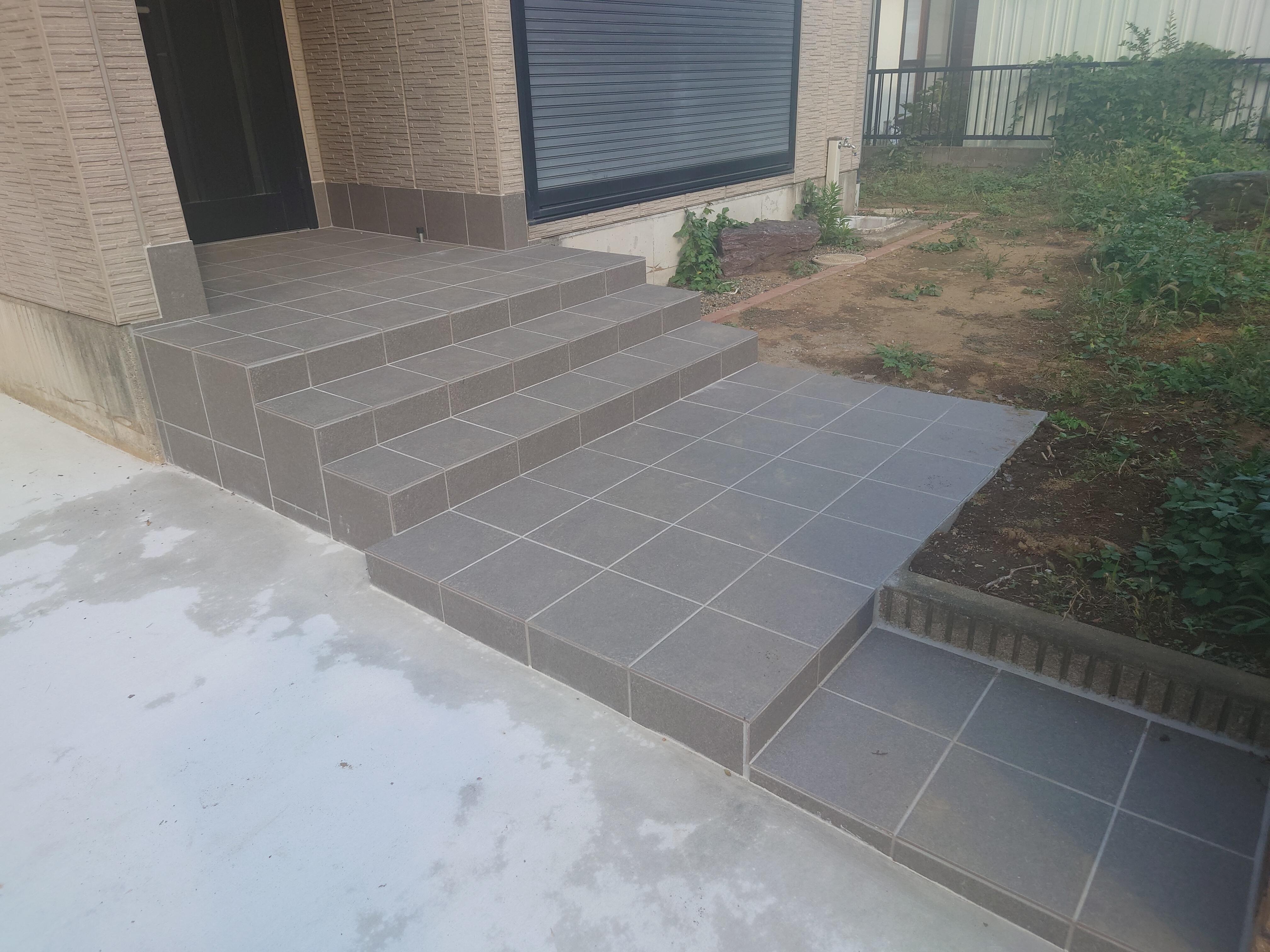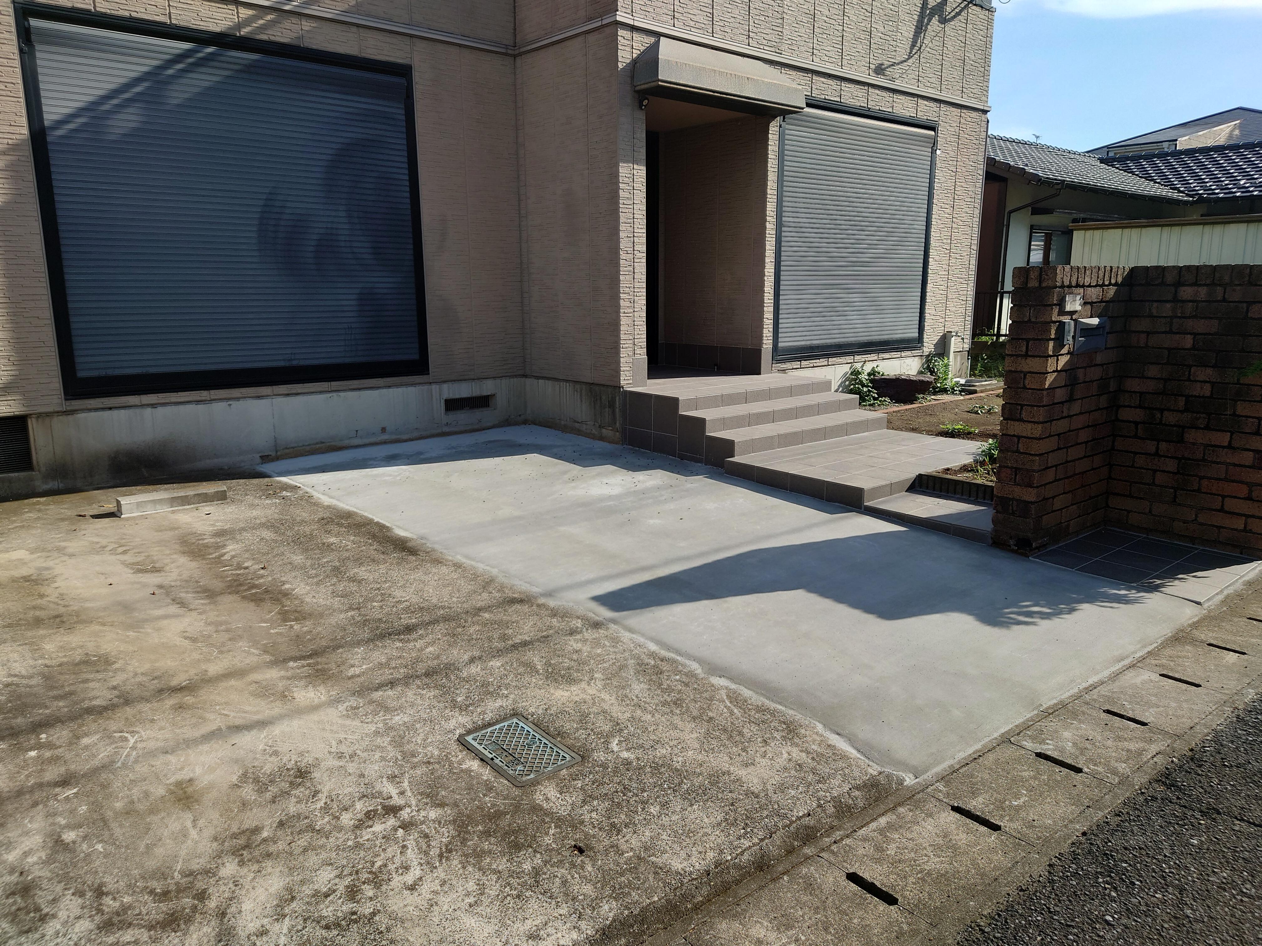既存のカースペースを残しつつ、門柱や門扉を撤去。 スペースを拡張し、2台置けるようにしました。 玄関アプローチも、新しいタイルを貼りイメージ一新となりました。 一部オープン外構とさせていただき、人も車も出入りしやすくなり生活にゆとりが生まれそうです。