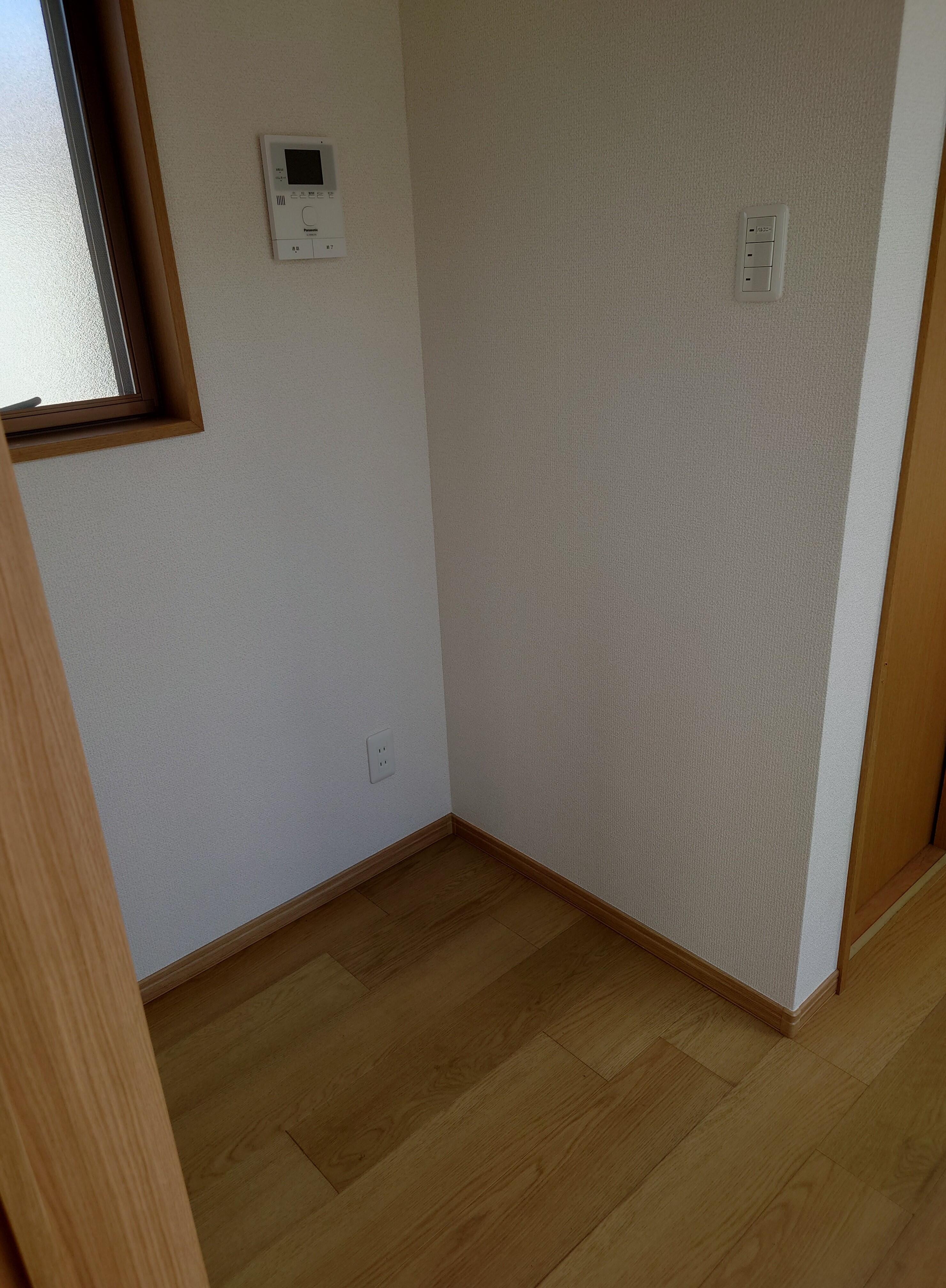 2階廊下のコーナー部に手洗いキャビネットを取付ました。 ボウル(陶器部分)もしっかりとした大きさがあり、手洗いに不便がなさそうです。 廊下のコーナーはデッドスペースになりやすい部分なのでとても良い活用方法です。