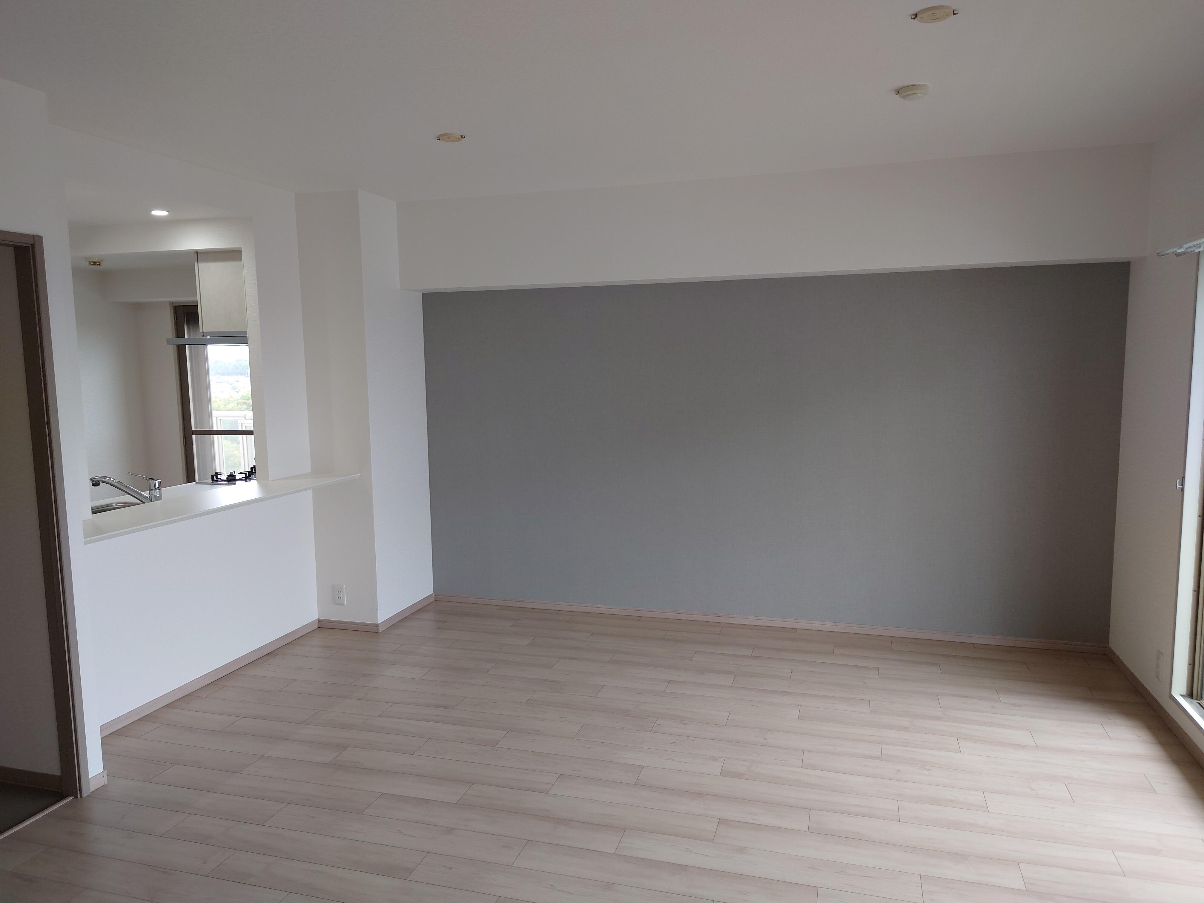 リビングの一面には淡いグレーのアクセントクロスを採用し、より一層洗練された空間となっています。