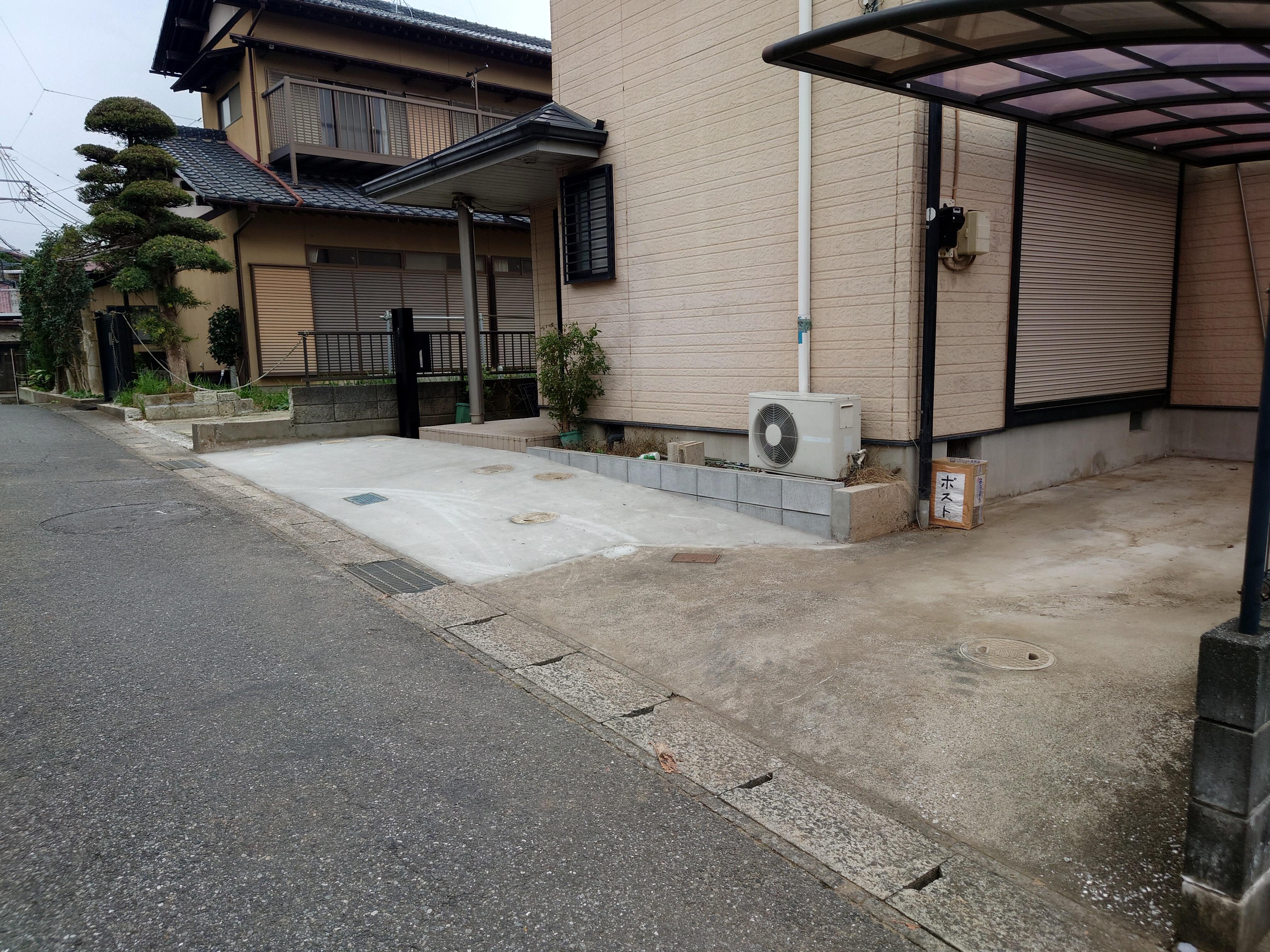 入居前で重機の搬入、工事がしやすい状況だったことから、玄関アプローチを含めスペースを確保、間口を広げた駐車場拡張工事を行いました。