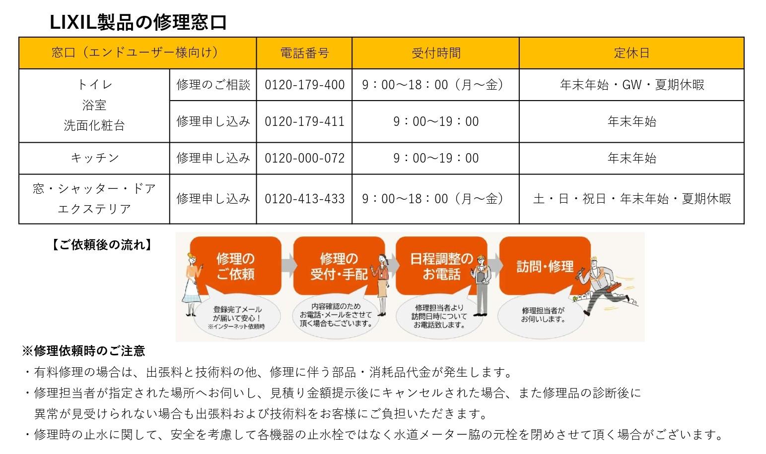 LIXIL公式ホームページからも修理のお申し込みが可能です。
