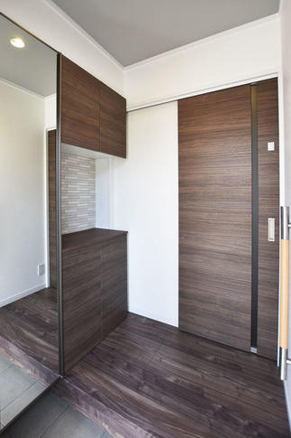 玄関とトイレには、LIXILのエコカラットを採用しました。空間にアクセントを付けるのに加え湿度調整やニオイを吸収するという役割もあります。