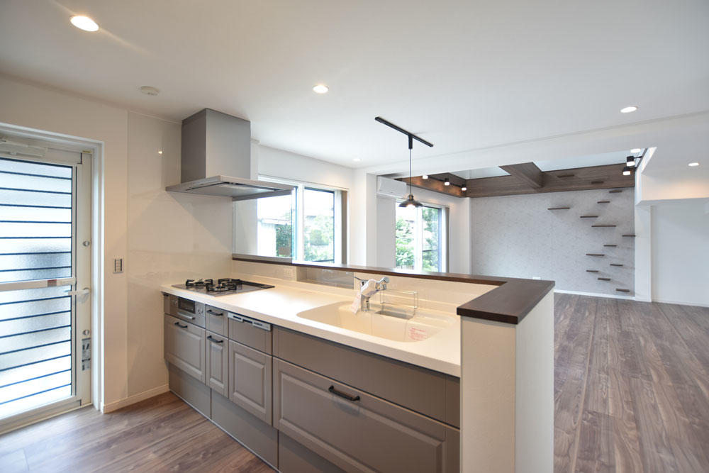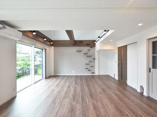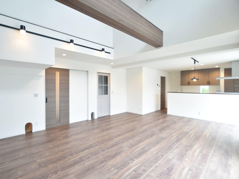 初めて工事をさせていただく場所を拝見した時に、ゆとりのある広さだと感じたため、新しくつくるリビングの上部を吹き抜けにしてはどうかと提案させていただいた結果、23帖の開放感のあるLDKが完成しました。