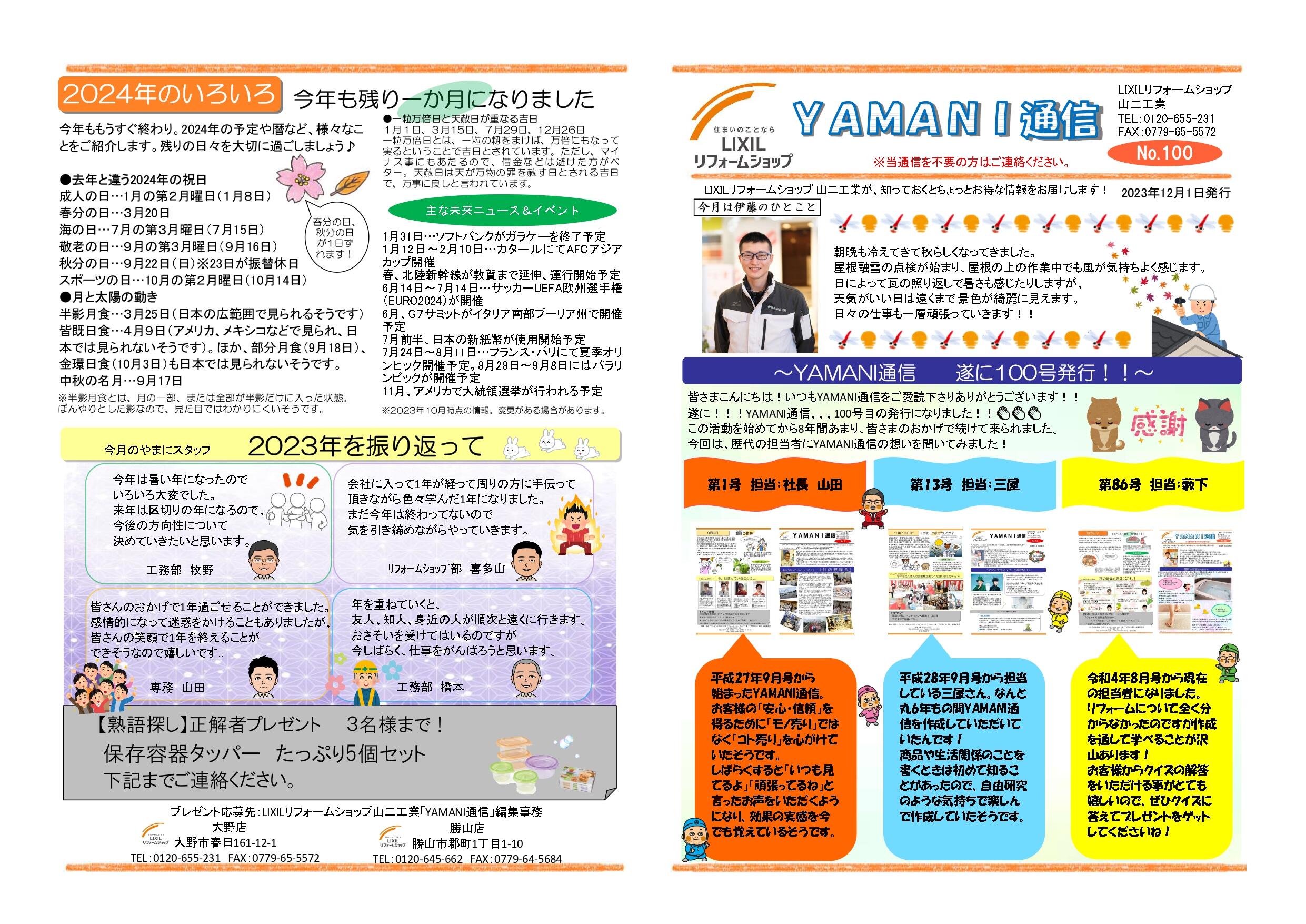 YAMANI通信12月号 №100✨