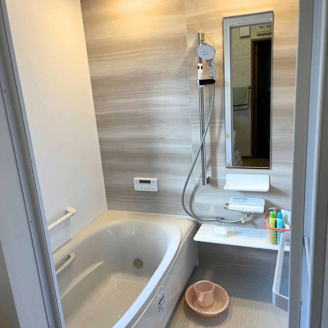 システムバス「リデア」です。 ゆったりできるバスタブです。収納もカウンターもお好みにアレンジして使えるフレキシブルなバスルームです。マグネットアイテムで、より一層コーディネートは広がります。