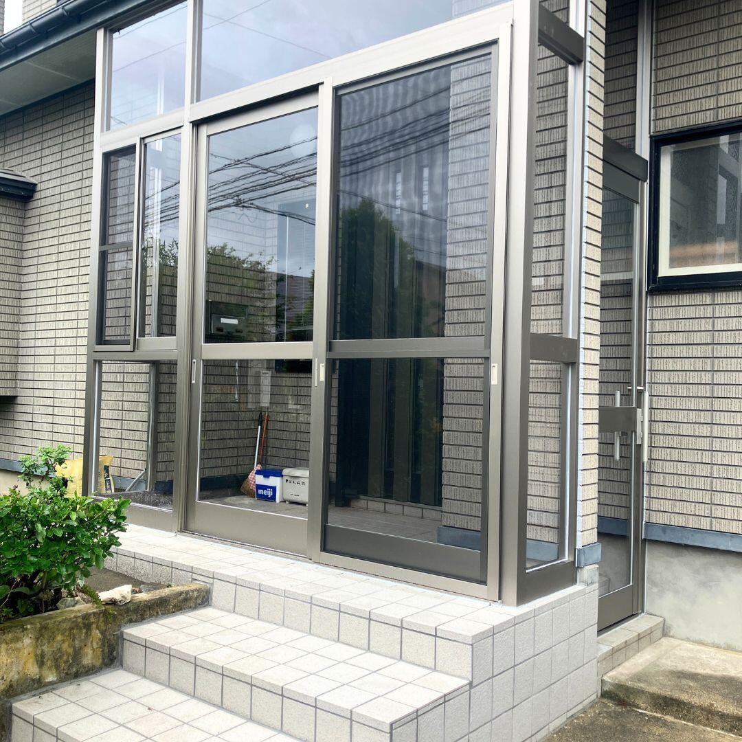 風除室の設置と玄関タイルの交換工事をさせていただきました。 「ツインガードⅢ」色はシャイングレーです。 こちらの部材はガラスでなく、5㎜ポリカを使用しており、 ガラスよりも耐久性に優れています。 また、玄関ポーチのタイルも貼替えをしました。 すっきりと明るい印象の玄関に仕上がりました。