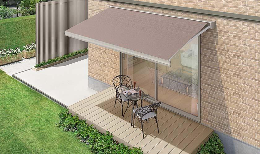 このような日差しにはボタンで設置できるオーニングでしっかりカバーできます。