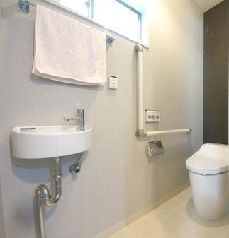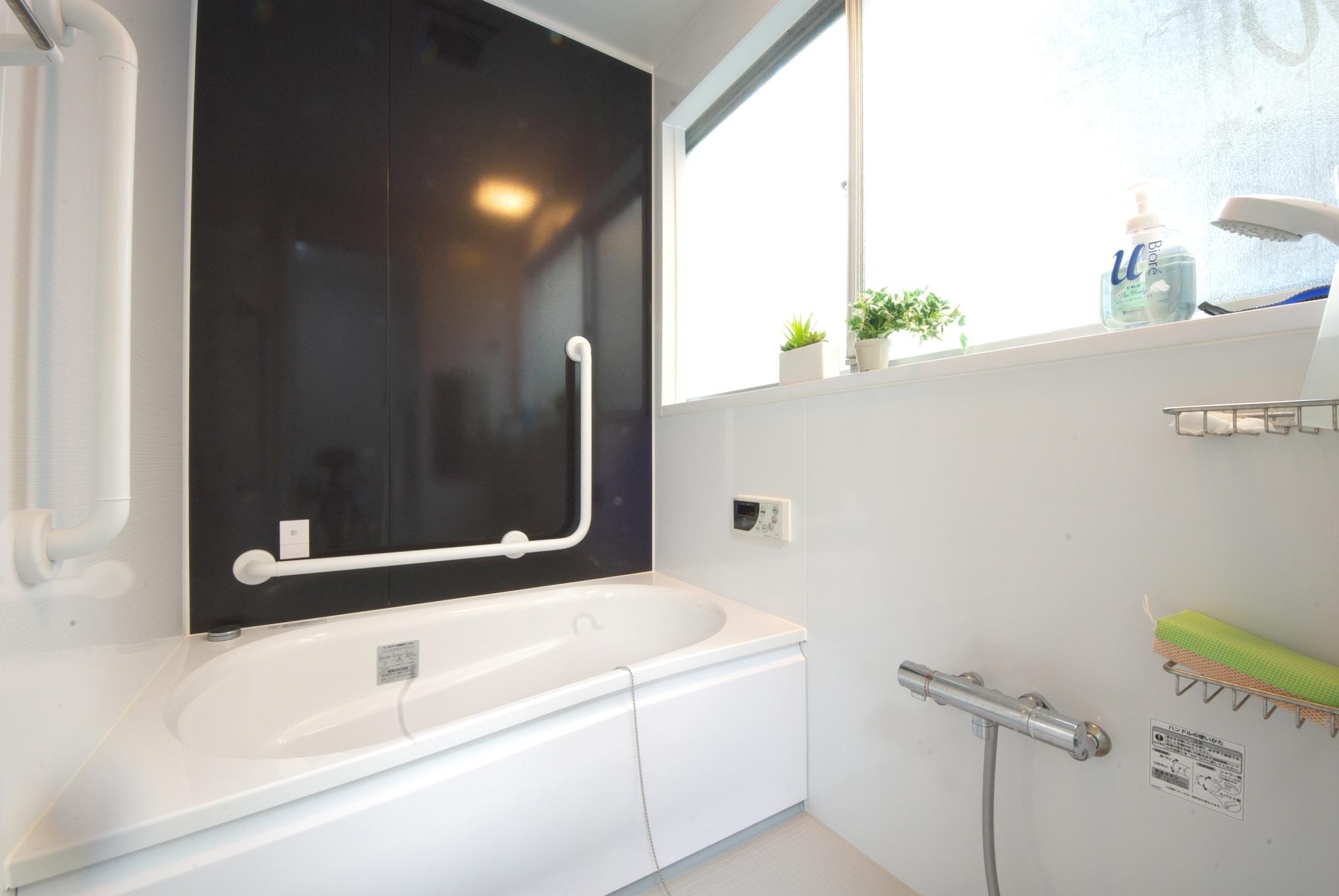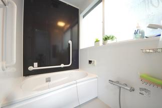 既存の窓はそのまま残して、ユニットバスを設置しました。 窓が大きいので明るい浴室です。アクセントのパネルも素敵です。 ジェットバスをつけて、リラックスバスタイムです。 トイレ同様手すりも取り付けました。