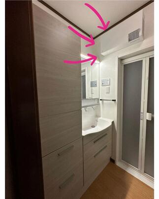 ・洗面所暖房機は、ドライヤーをハンズフリーで行えることも、選定したポイント。