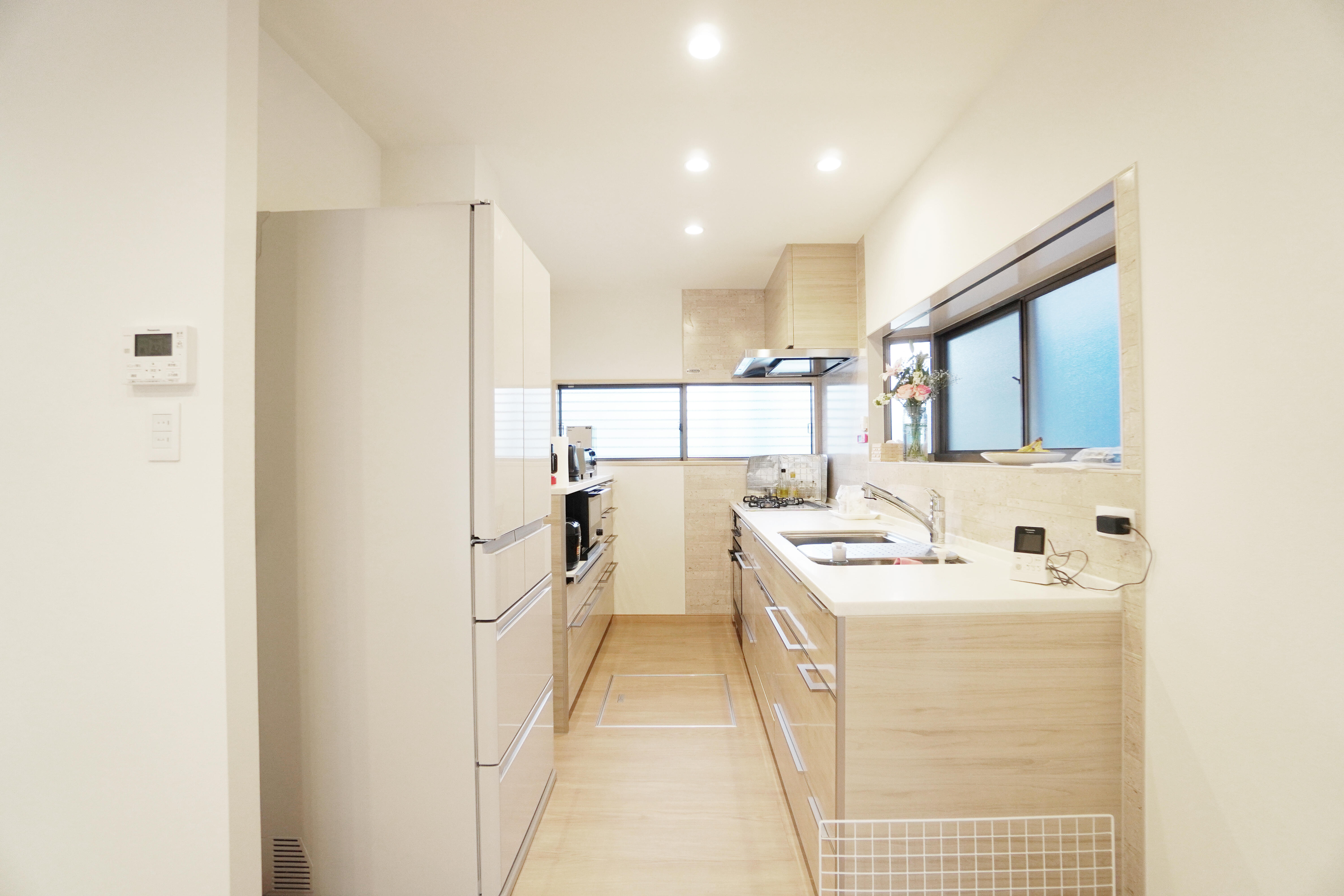 対面型のキッチンは、使いやすさとコミュニケーションを両立するスタイルに。