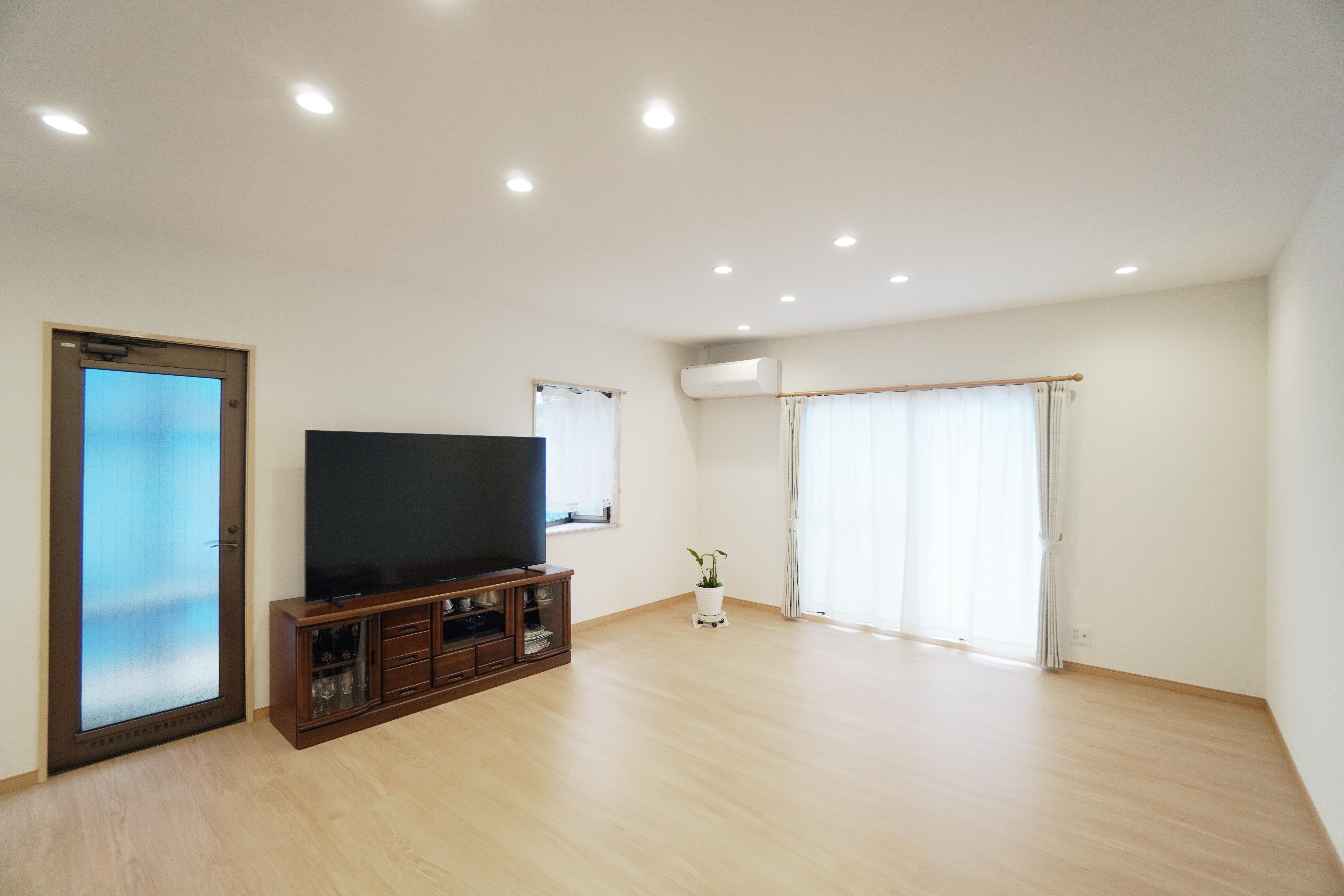 リビングはあたたかみのあるフローリングと調光ダウンライトで、昼夜問わず心地よく。