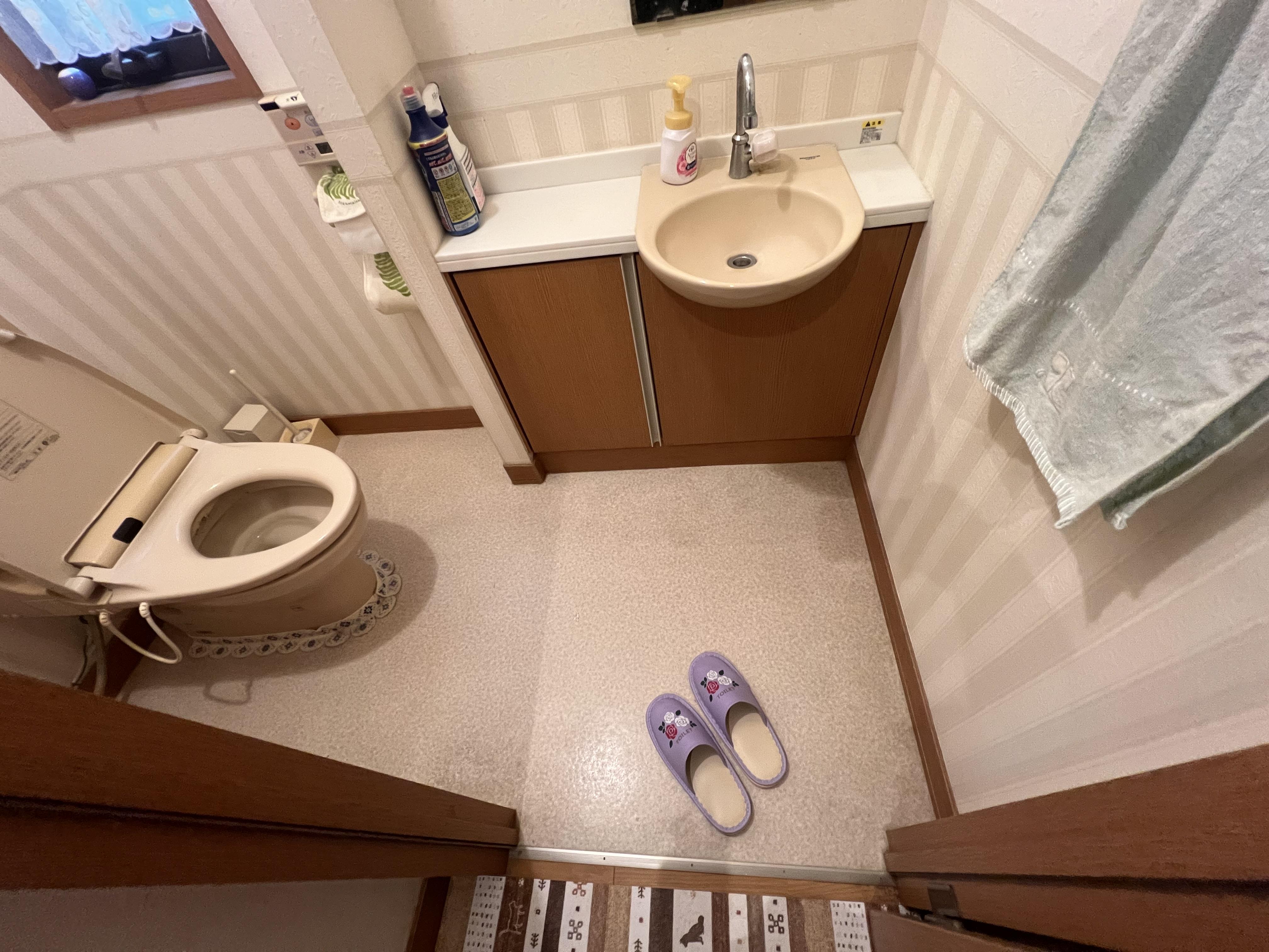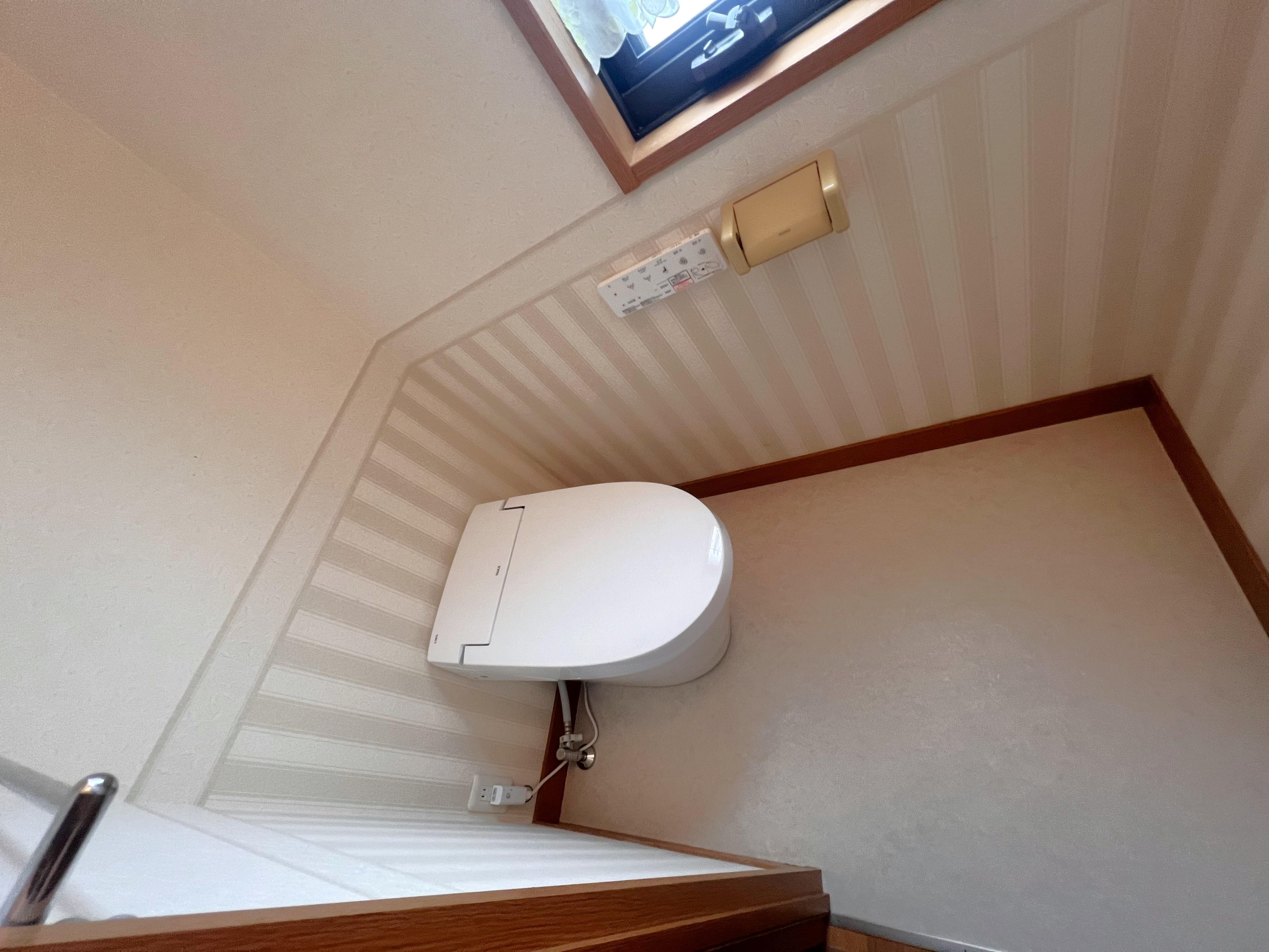 トイレのお取替を行いました。 今回お選びいただいたサティスSはすっきりとしたデザインが特徴的で、お掃除も楽々です。