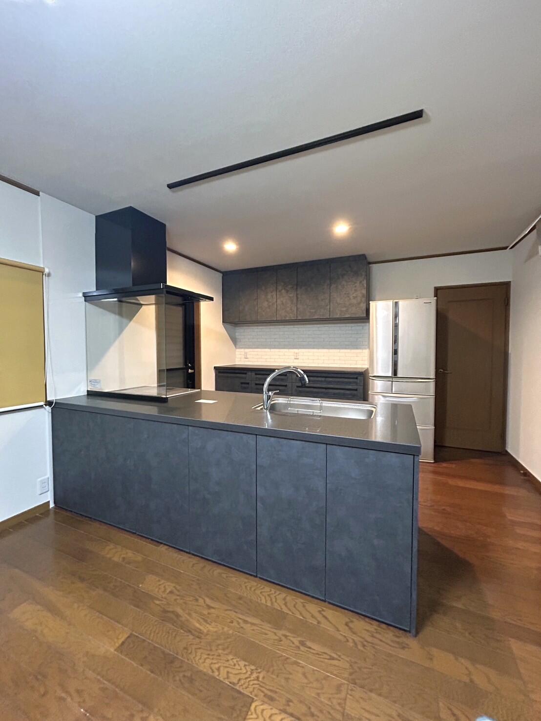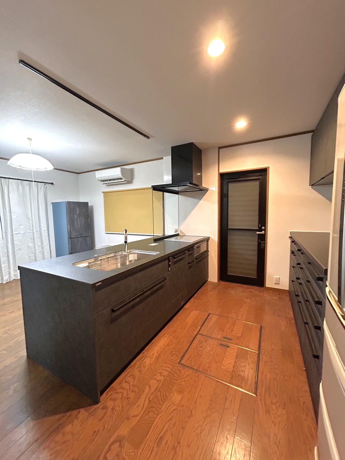 そこで、シンク下には「らくパット収納」を採用。引き出し式の大容量収納で、調理道具やストック品をすっきり整理でき、取り出しやすさも抜群です。 さらに、キッチン背面にはシステム収納の食器棚を設置。キッチンとデザインを統一することで、見た目のある美しい空間に仕上げました。