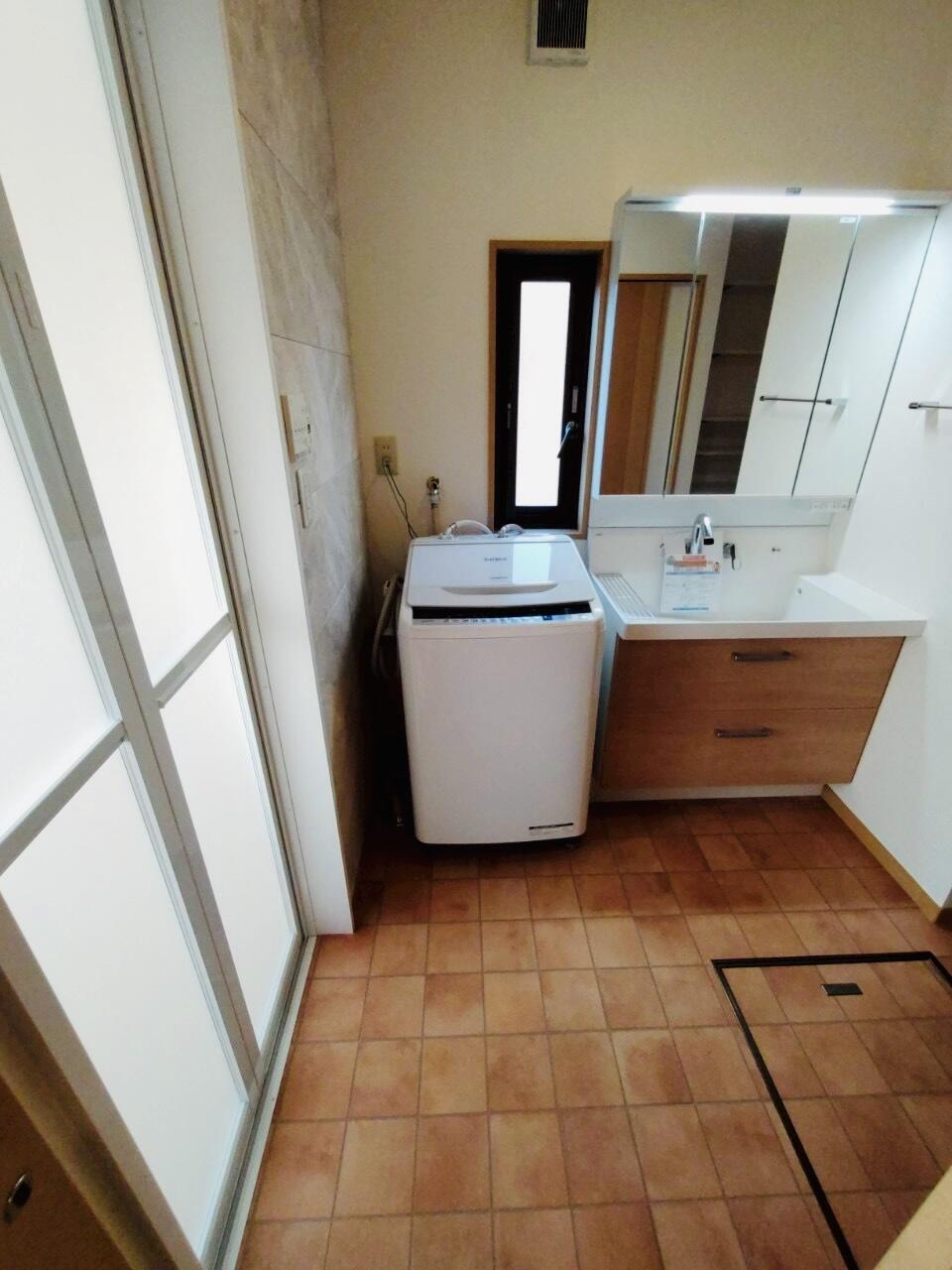 また、以前の洗面台の間口は750㎜程で洗濯機との間に隙間がありましたが、デッドスペースを有効活用する為に900㎜にサイズアップしました。