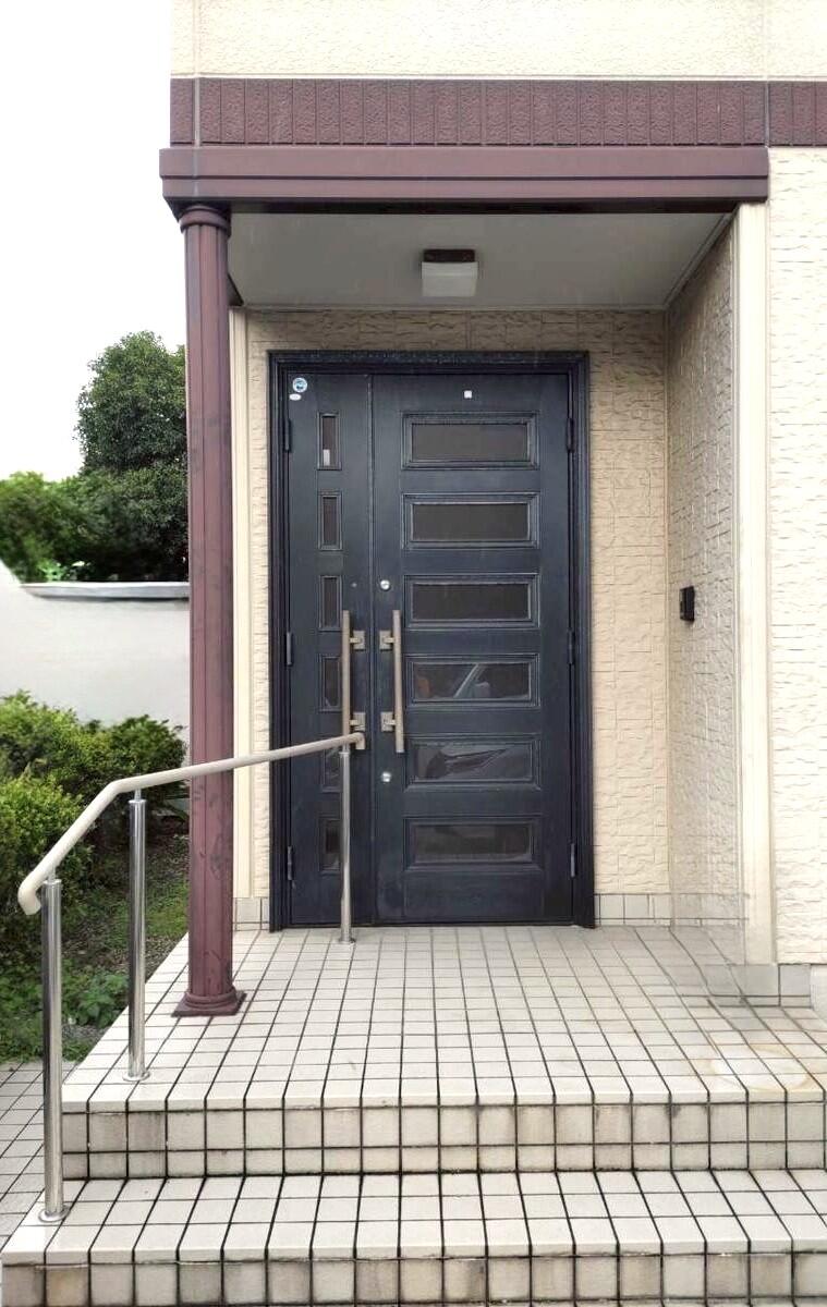 玄関ドアの経年劣化が激しく、色が変色してきた為、新しいドアへお取替えを行いました。
