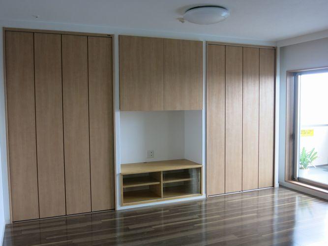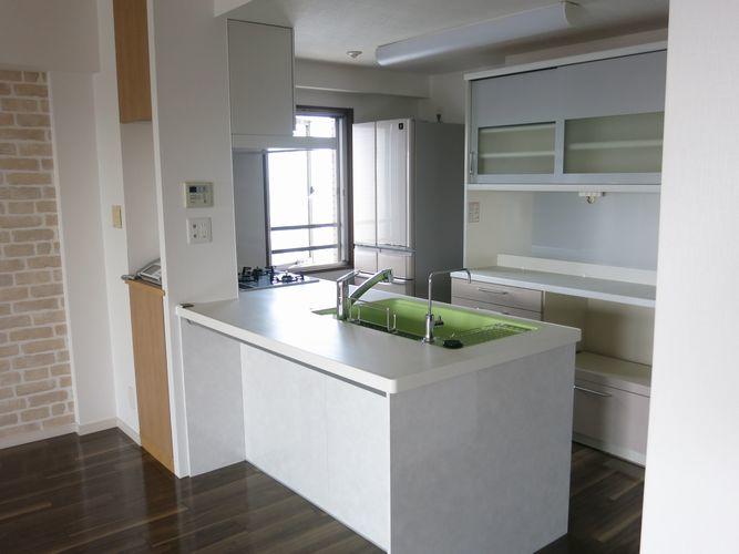家族構成の変化に伴いLDKに隣接していた和室を改築してリビングを拡張しました。 収納量も減ったのでキッチン吊戸棚もなくして開放的なキッチンに変更しました。