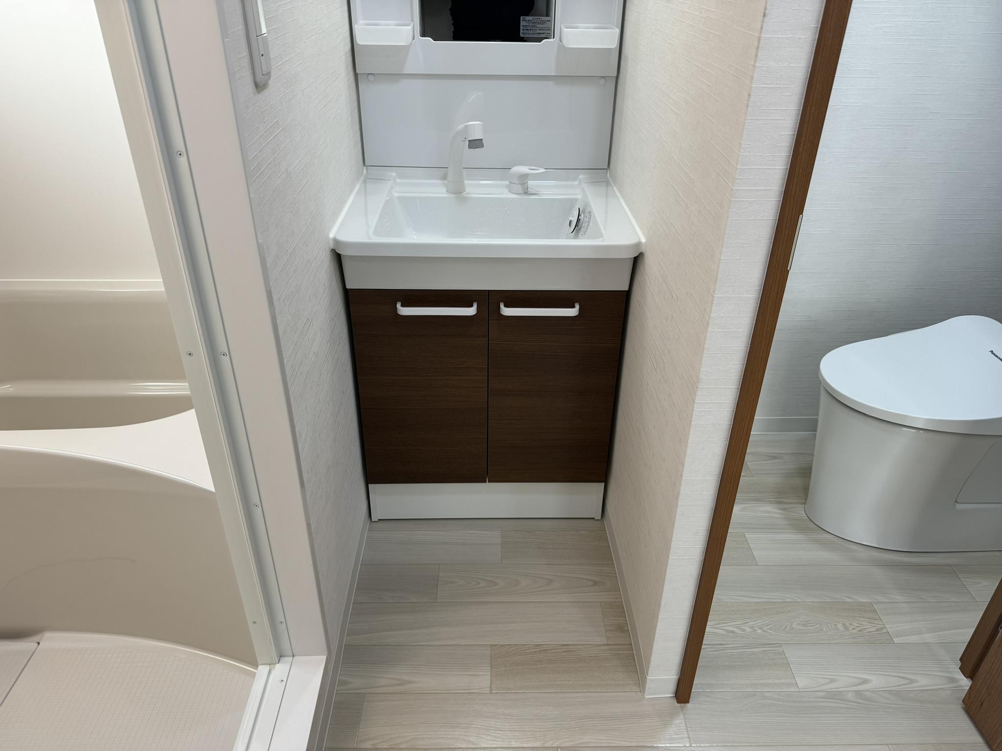 施工は、まず既存の壁を撤去し、間取りを再設計することから始まりました。新たな配管や電気工事を行い、対面式キッチンの配置を確定。内装も一新し、現代的なデザインに仕上げました。