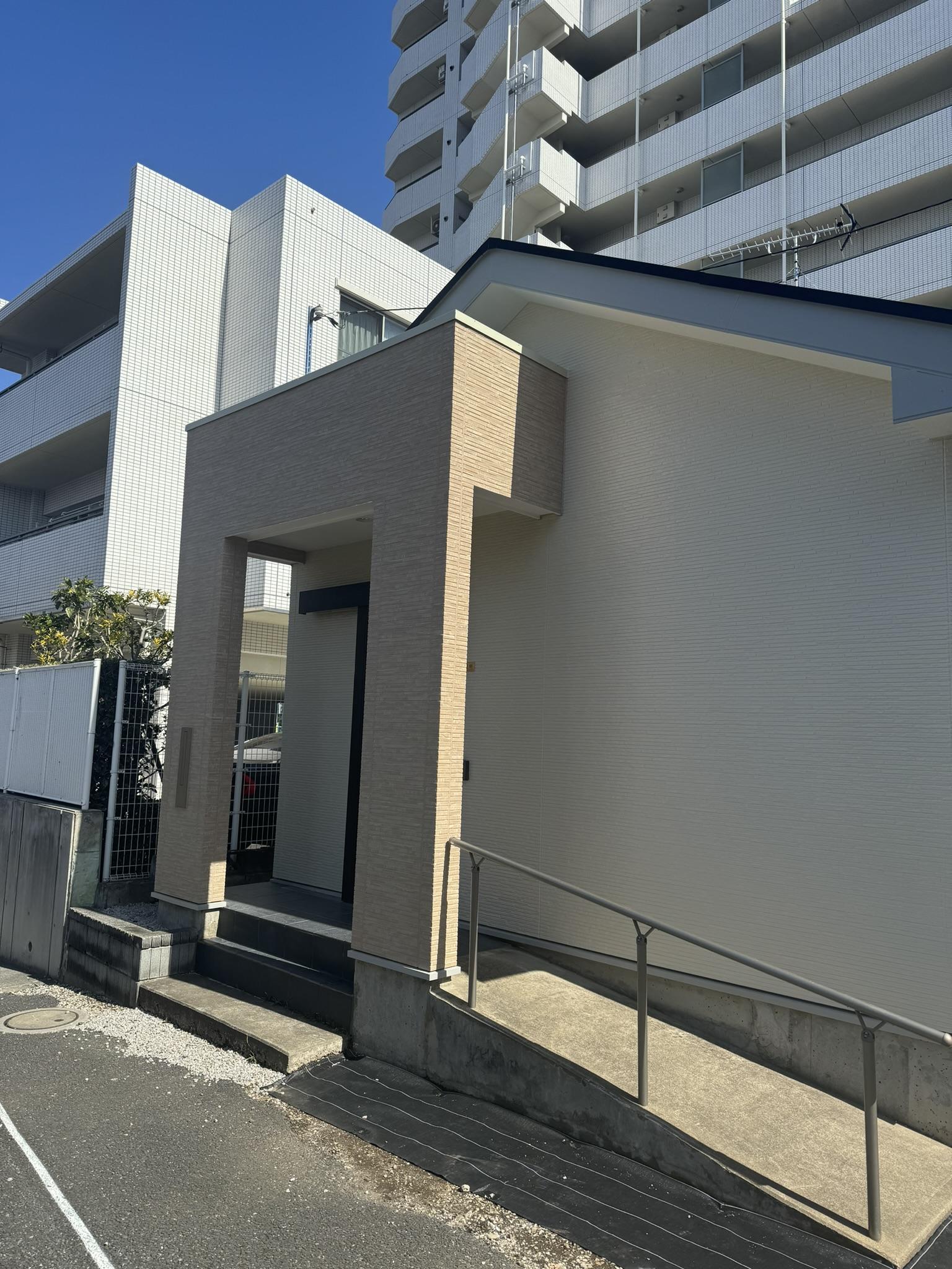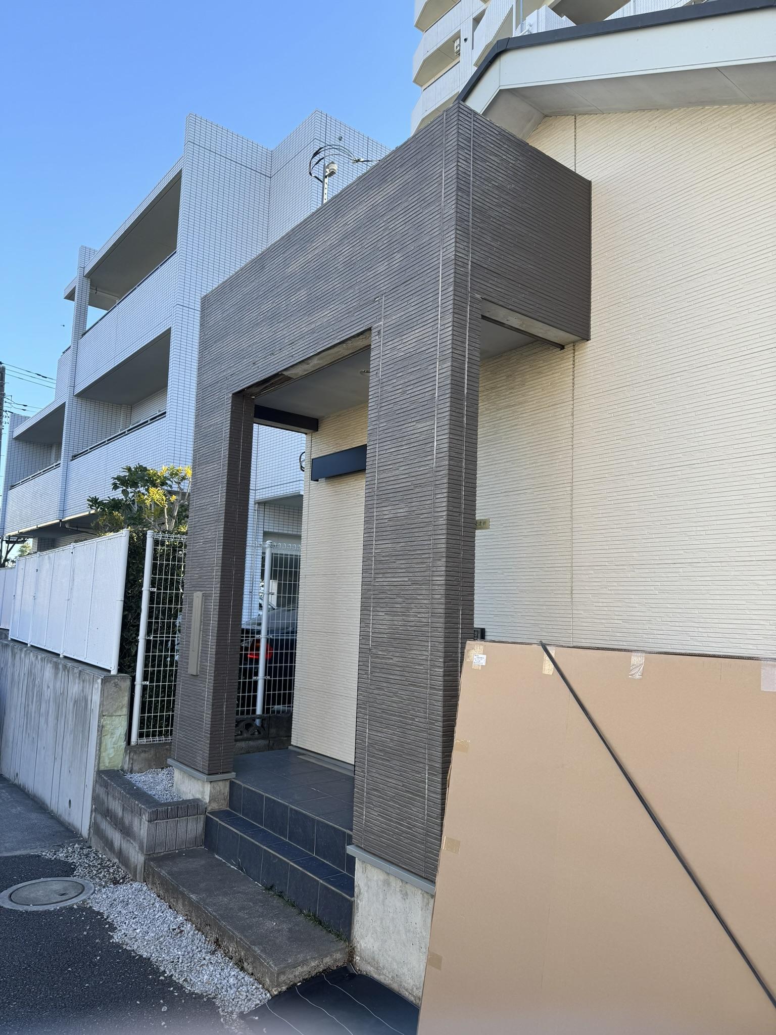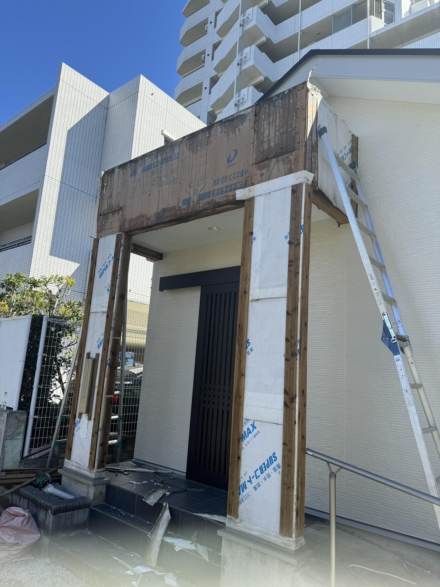玄関ポーチ屋根のパラペット笠木が壊れて外壁が雨水にさらされてしまった箇所を 撤去して下地とサイディングを張替えました