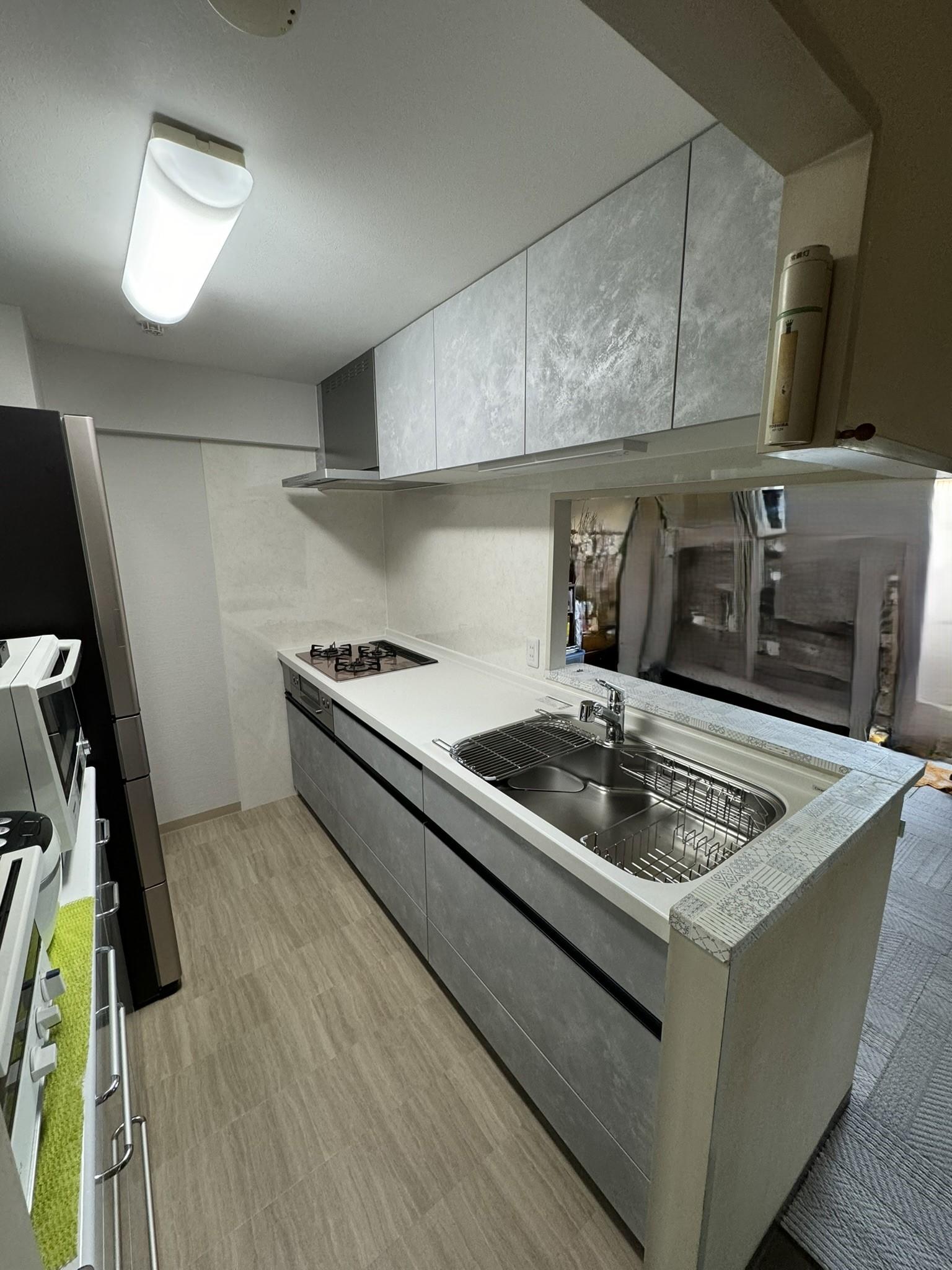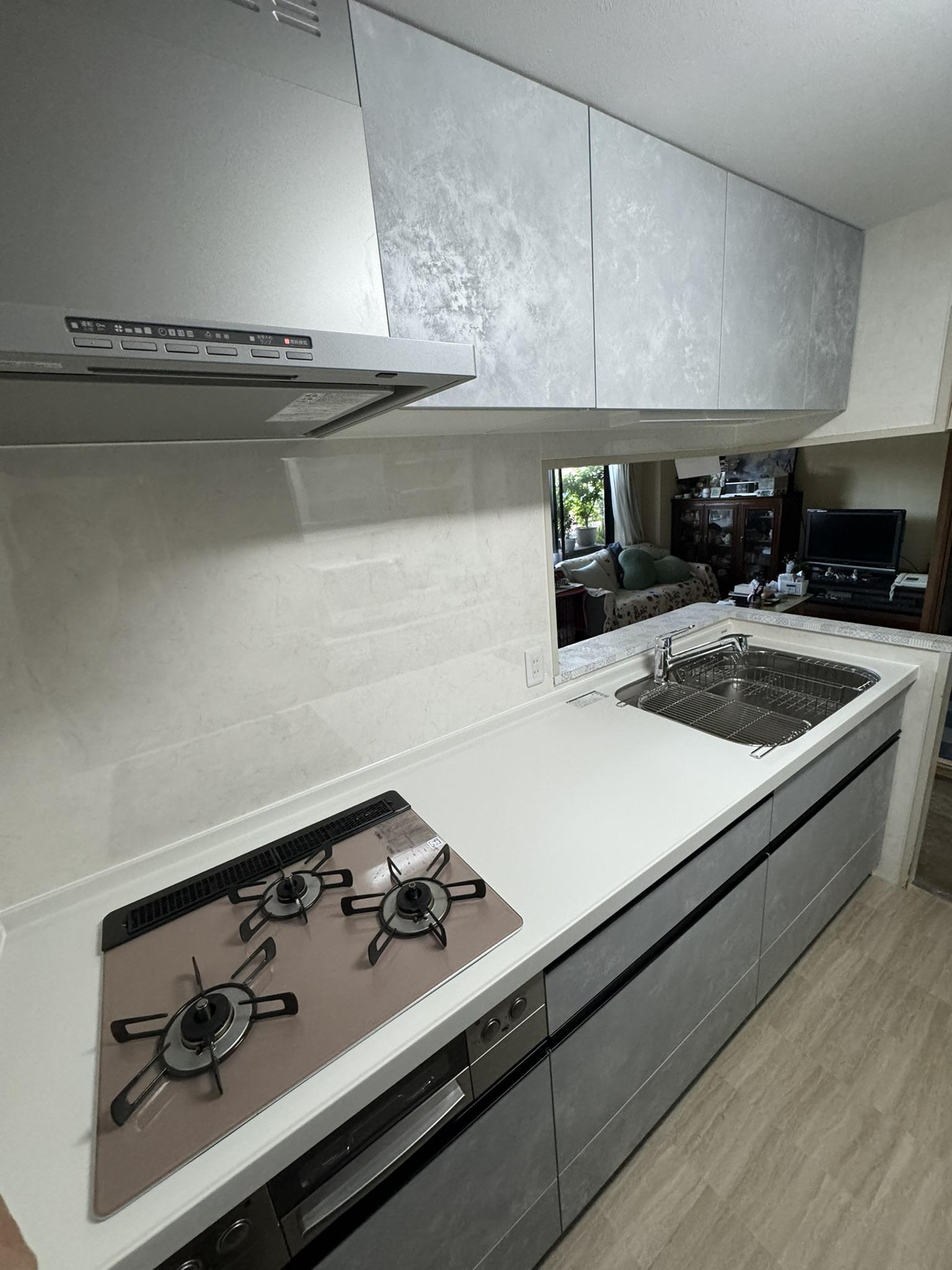 システムキッチンのリフォーム事例です 長年使用してきたキッチンをクリナップのステディアに変更しました。 レンジフードとガスコンロは1年ほど前に交換したばかりなので再利用しています。