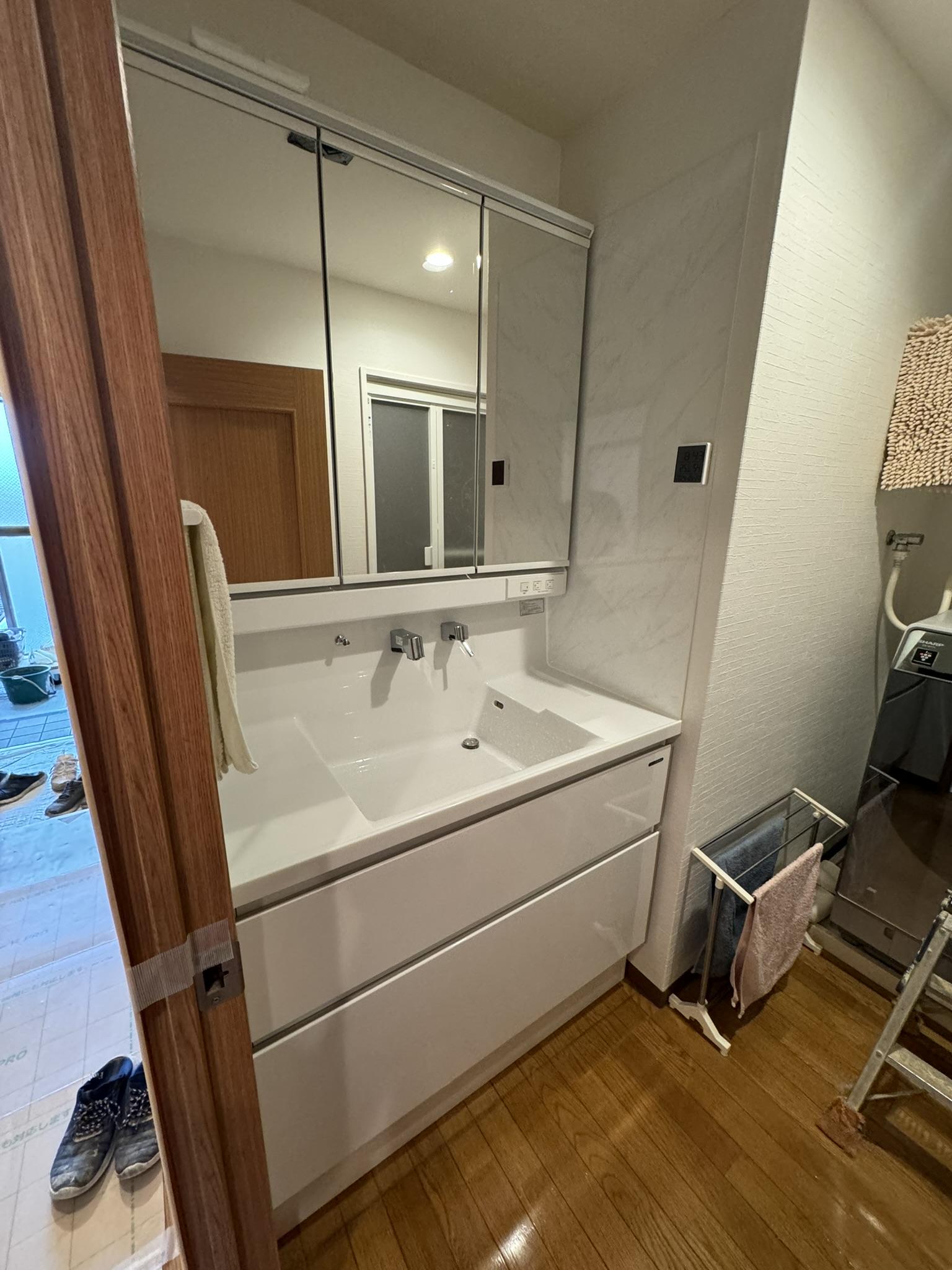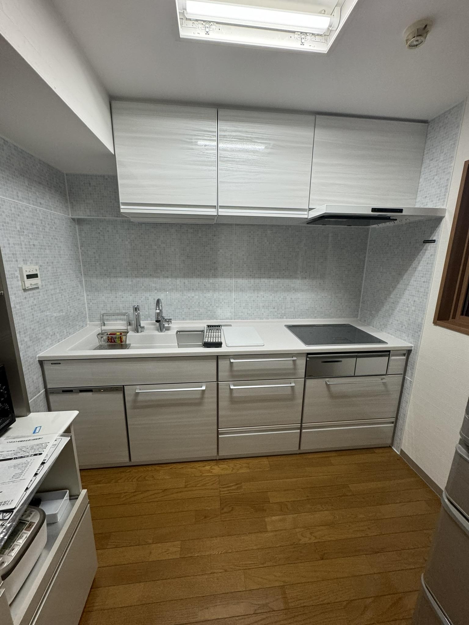 老朽化した水廻りの設備を一新しました。 キッチンを明るくしたいとのご要望から キッチンと隣接している南側にある洋室の 壁を抜いて室内窓を設置して採光を得ました。