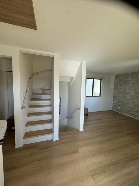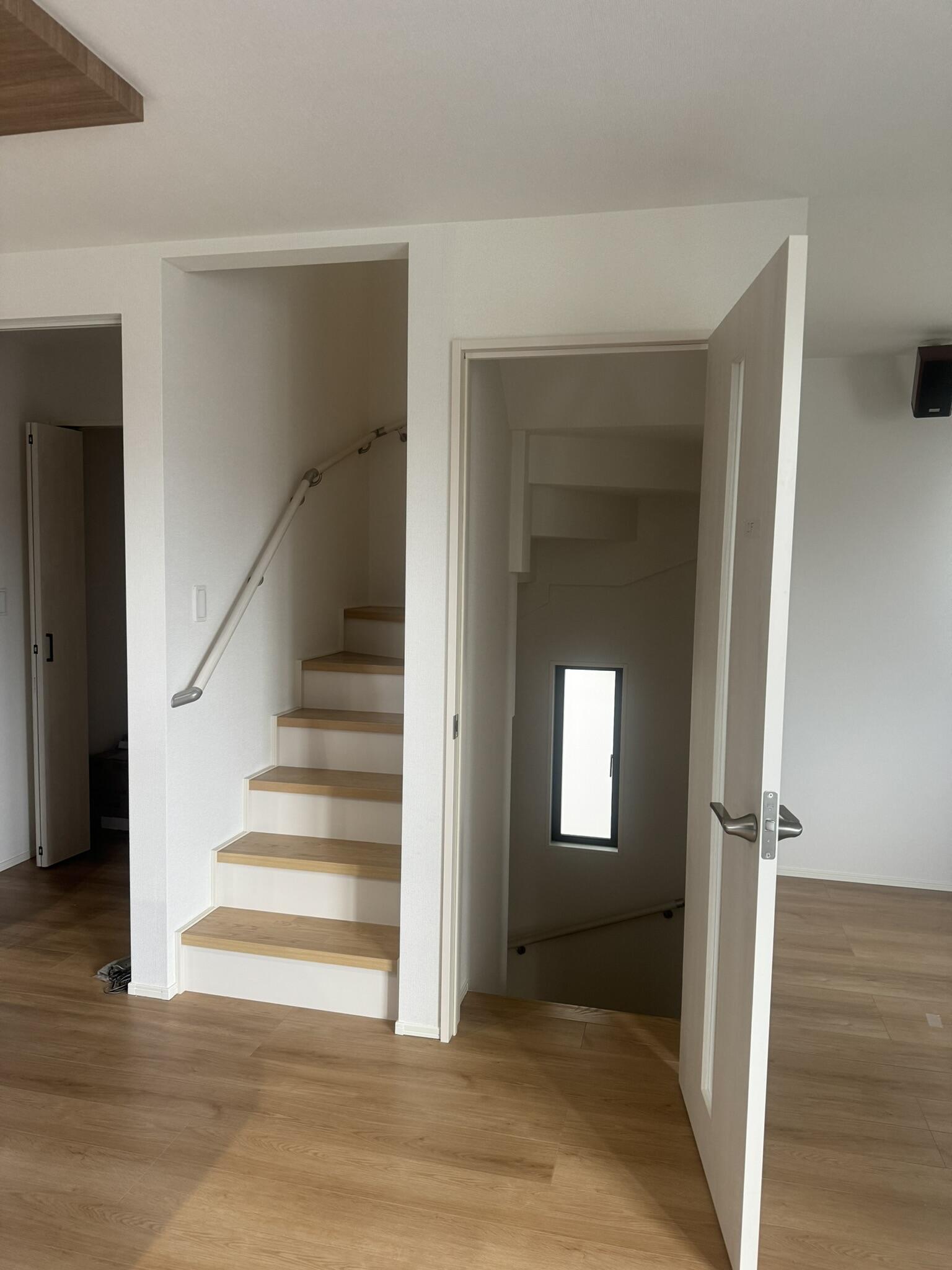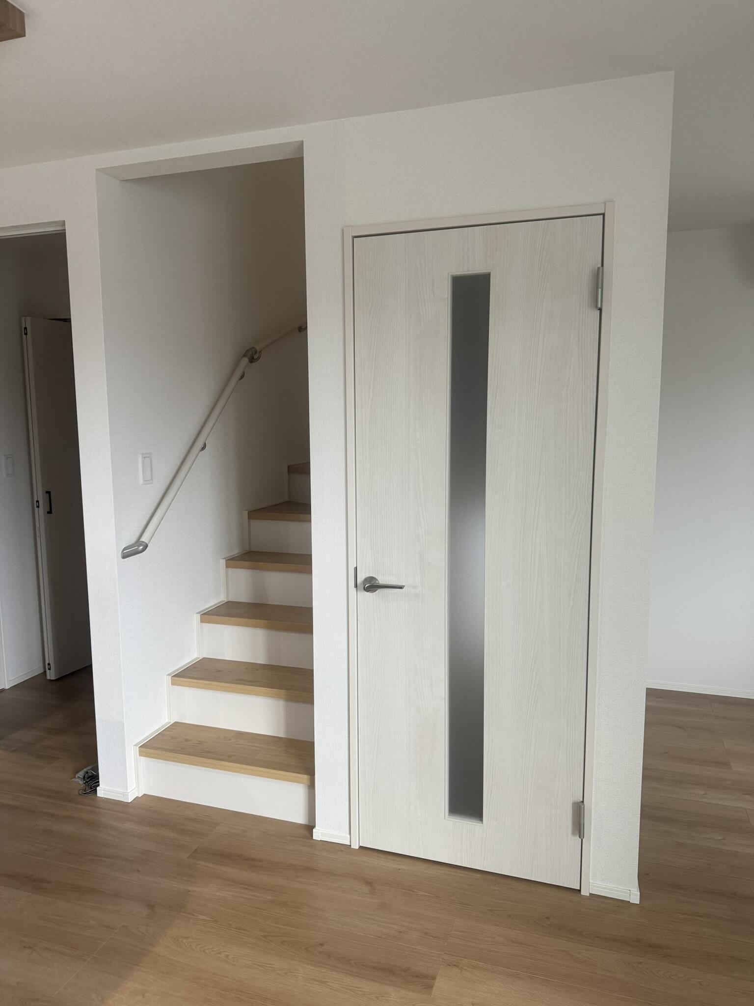 リビングにドアを新設しました。 最近ではよくある間取りですがリビングの階段前にドアがなくペットが出てしまわないようにとのご依頼でドアを新設しました。