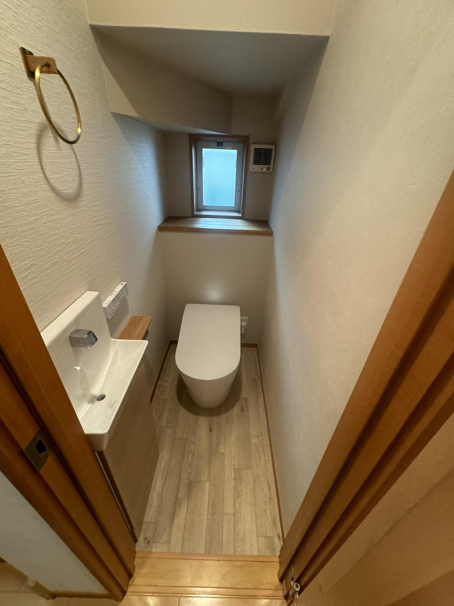 今回のリフォームで、トイレをタンクレスタイプに変更しました。最初はデザイン面での魅力に惹かれたのですが、実際に使ってみると、空間が広く感じられ、掃除のしやすさも格段に向上しました。タンクがない分、スッキリとした印象になり、トイレ全体がよりスタイリッシュになったように思います。 また、自動洗浄機能や節水機能も備わっており、使い勝手が良くなったのも嬉しいポイントです。以前のトイレではタンクに水がたまるのを待つ必要がありましたが、そのストレスもなくなり、とても快適になりました。 リフォームして本当に良かったと感じています。