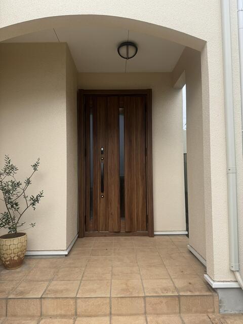 長年日に焼けてしまっていた玄関ドアが、新しく生まれ変わり、とても明るく素敵な印象になりました。