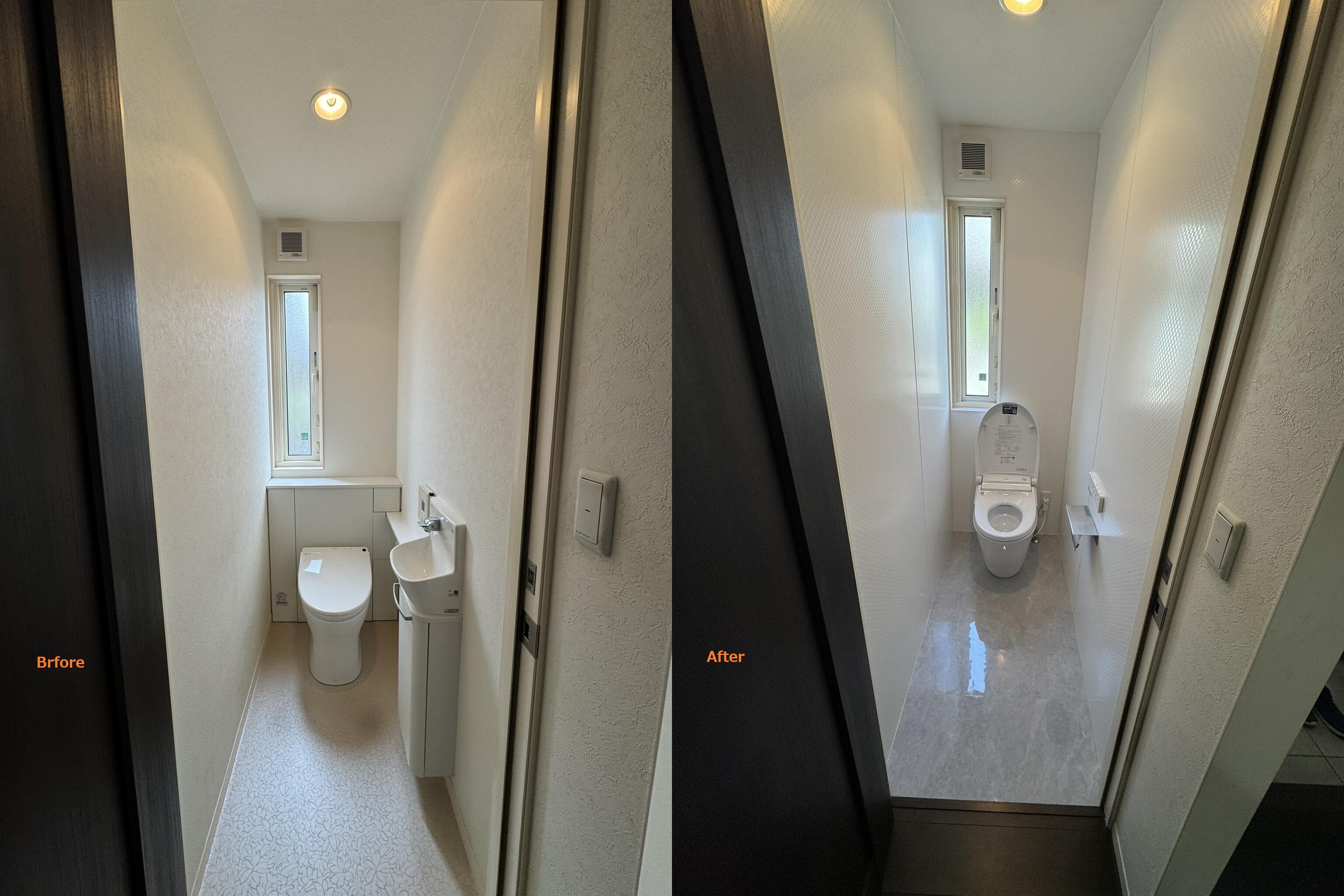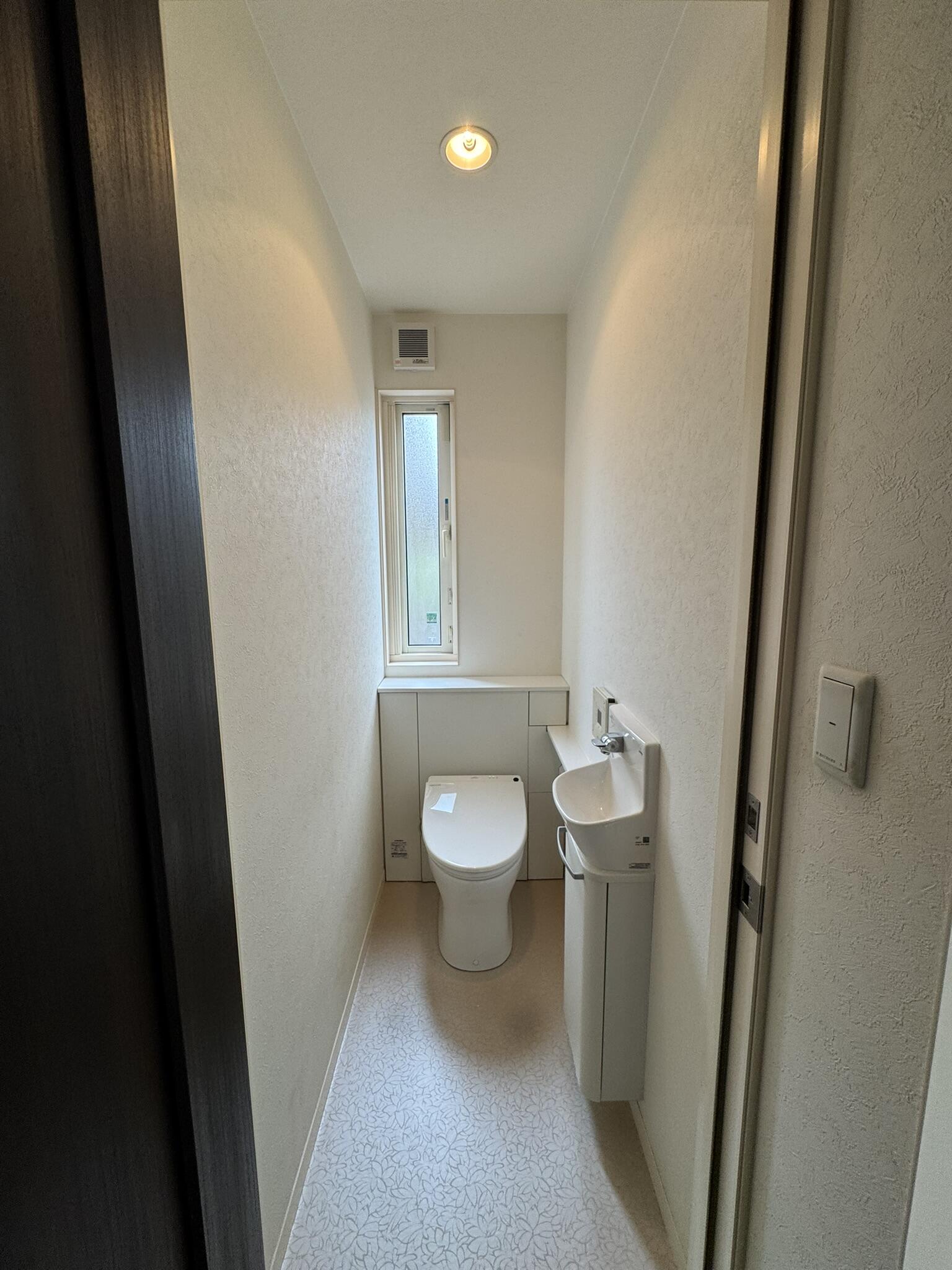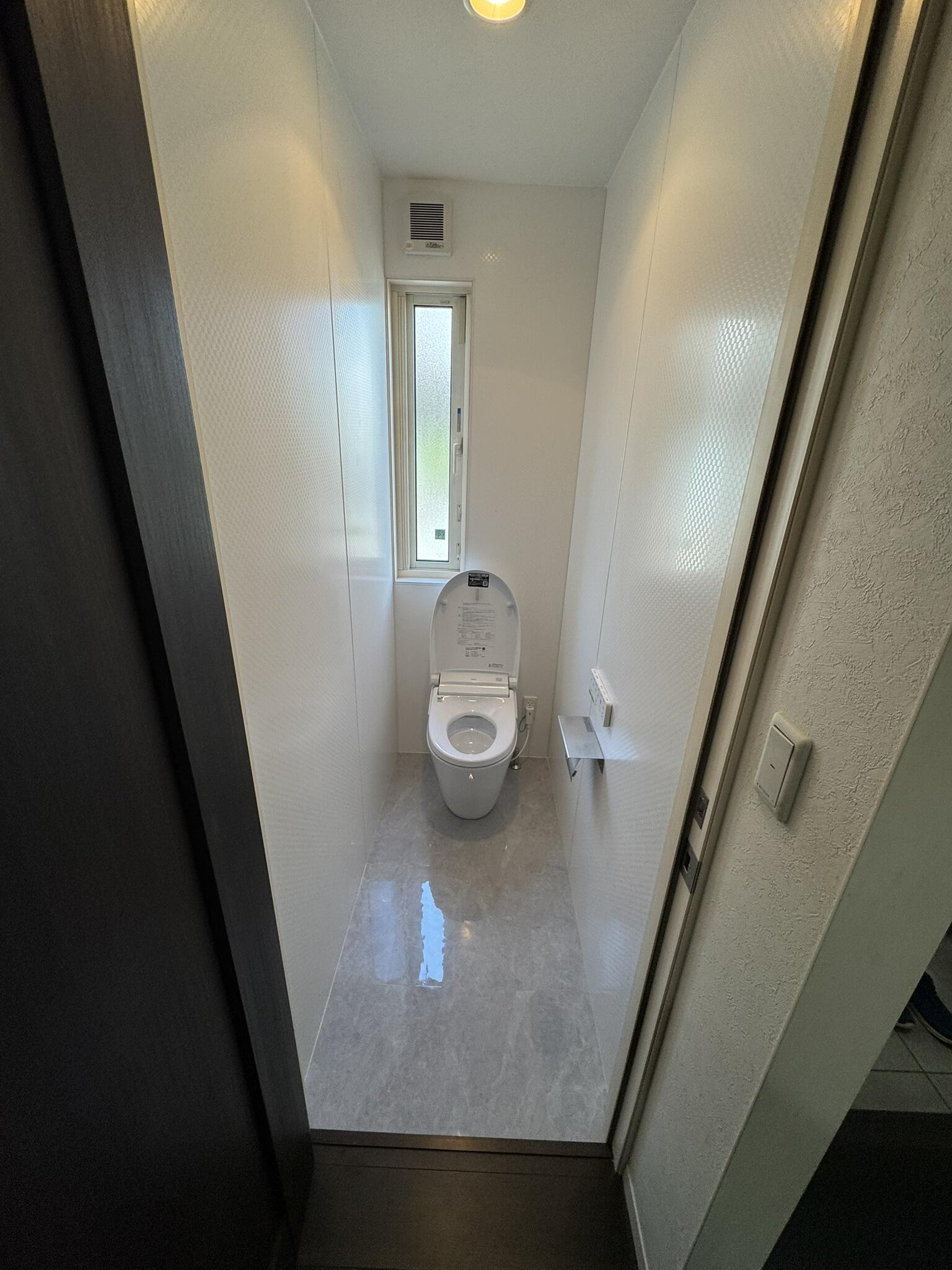 タンクレストイレにしたことで空間が広くなり、見た目もとてもスッキリしました 特に良かったのは、壁材を掃除のしやすい素材に変えてもらったこと。以前はクロスの継ぎ目に汚れが溜まりやすくて困っていたのですが、今はサッと拭くだけで清潔を保てるので、とても助かっています。