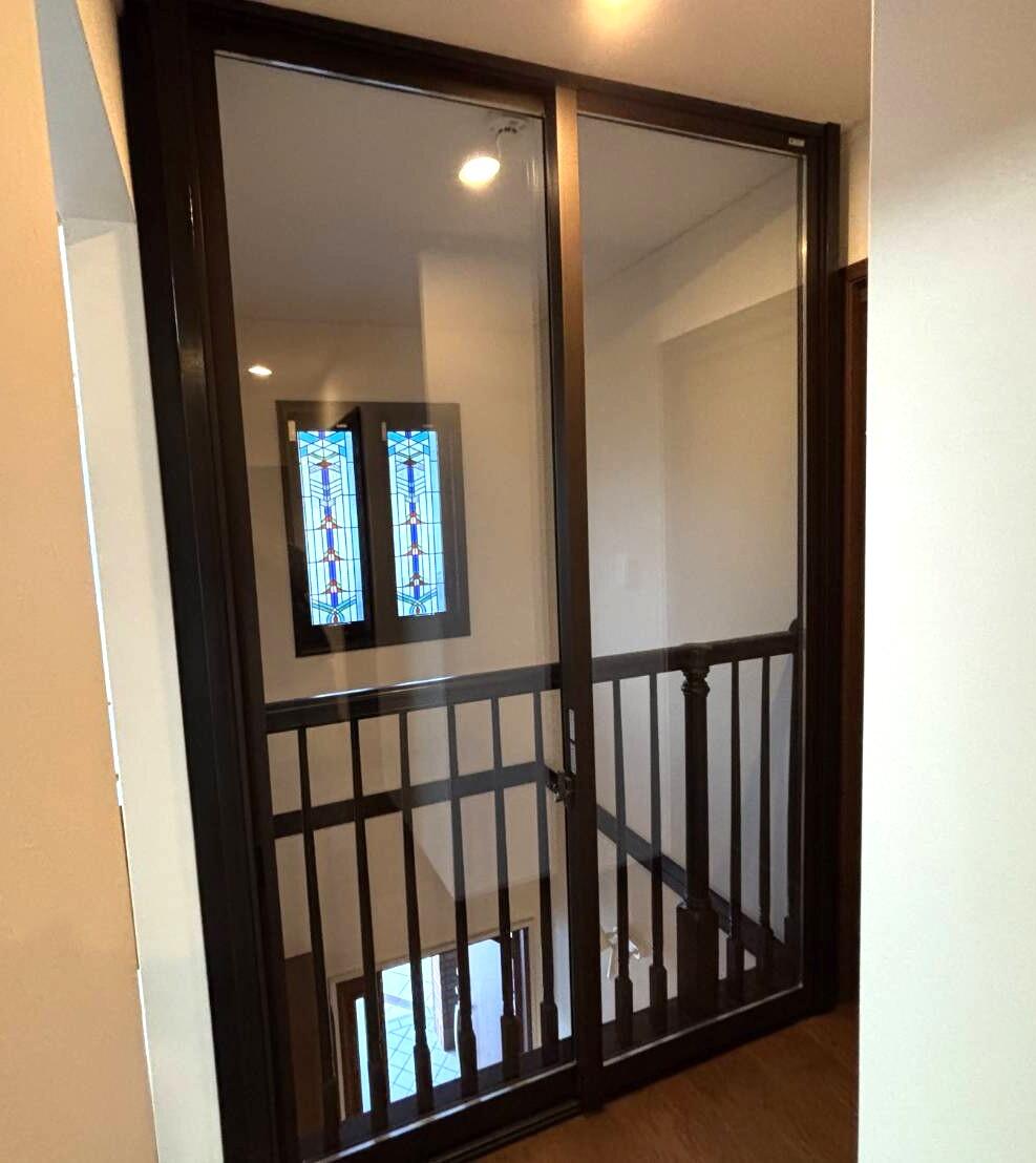 そこで、リビングのすべての窓に内窓を取り付け、断熱仕様の玄関扉に交換。さらに、吹き抜け部分にも内窓を外部・内部両方に取り付けることで、冷気が入りにくく施工させていただきました。