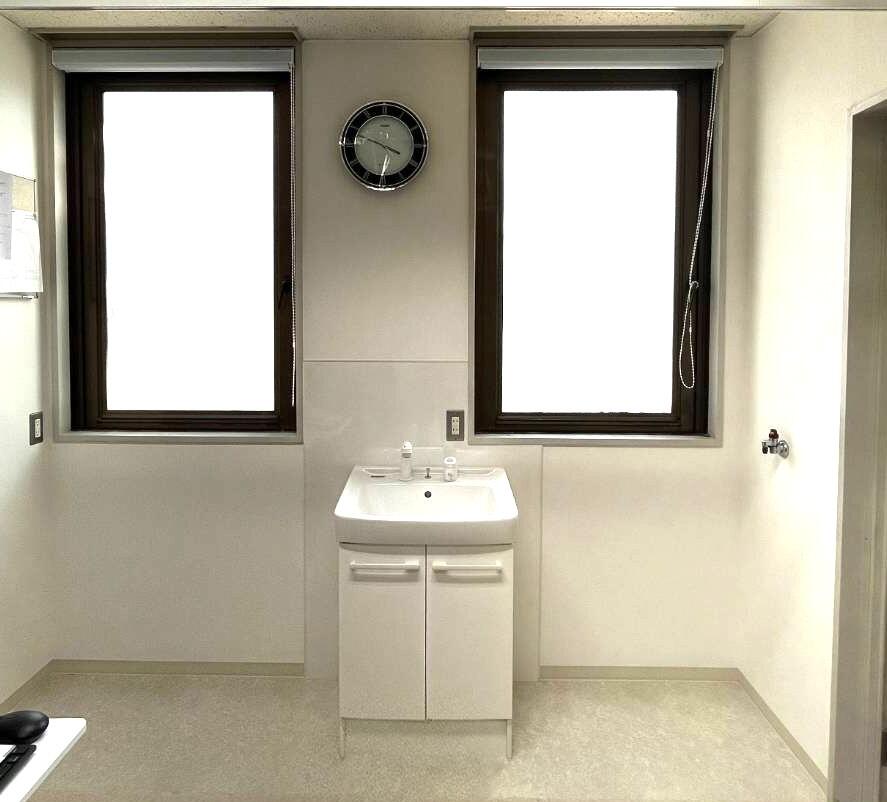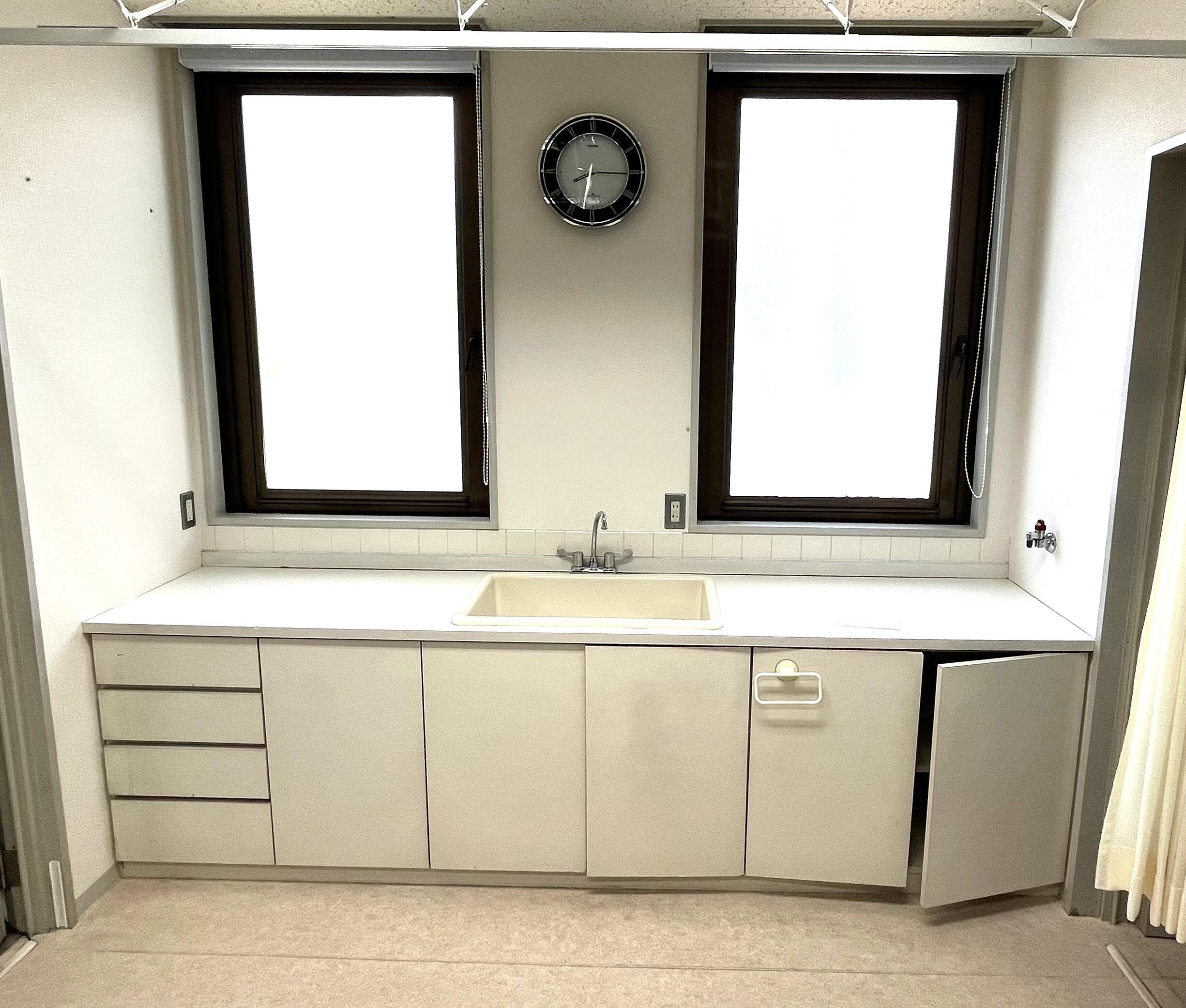 クリニックの手洗いの下に経年の水漏れでカビがはえてしまっているというご相談でした。 費用を抑えて両サイドに書類ラックを置きたいというご希望でしたので、設置位置を調整させていただき施工させていただきました。