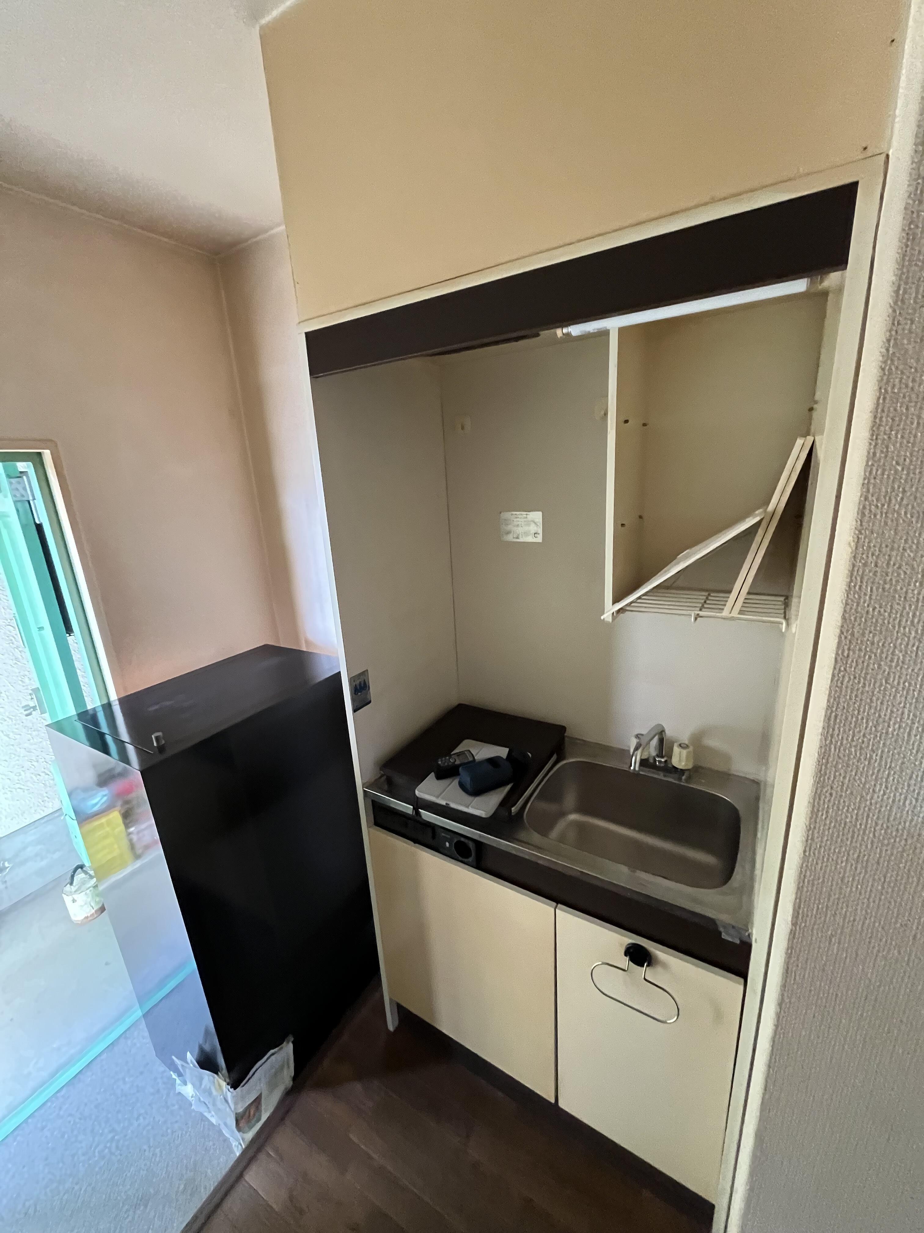 水回りは設備を一新し、キッチンをミニキッチンからコンパクトキッチンに交換。3点ユニットもシャワールームとトイレのものに交換しました。